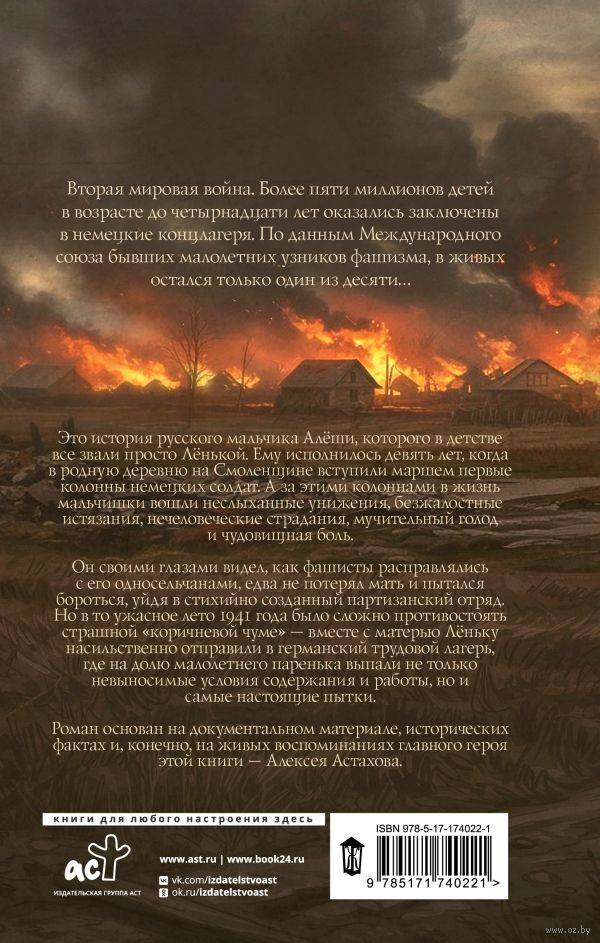 Это история русского мальчика Алёши, которого в детстве все звали просто Лёнькой. Ему исполнилось девять лет, когда в родную деревню на Смоленщине вступили маршем первые колонны немецких солдат. А за этими колоннами в жизнь мальчишки вошли неслыханные унижения, безжалостные истязания, нечеловеческие страдания, мучительный голод и чудовищная боль.