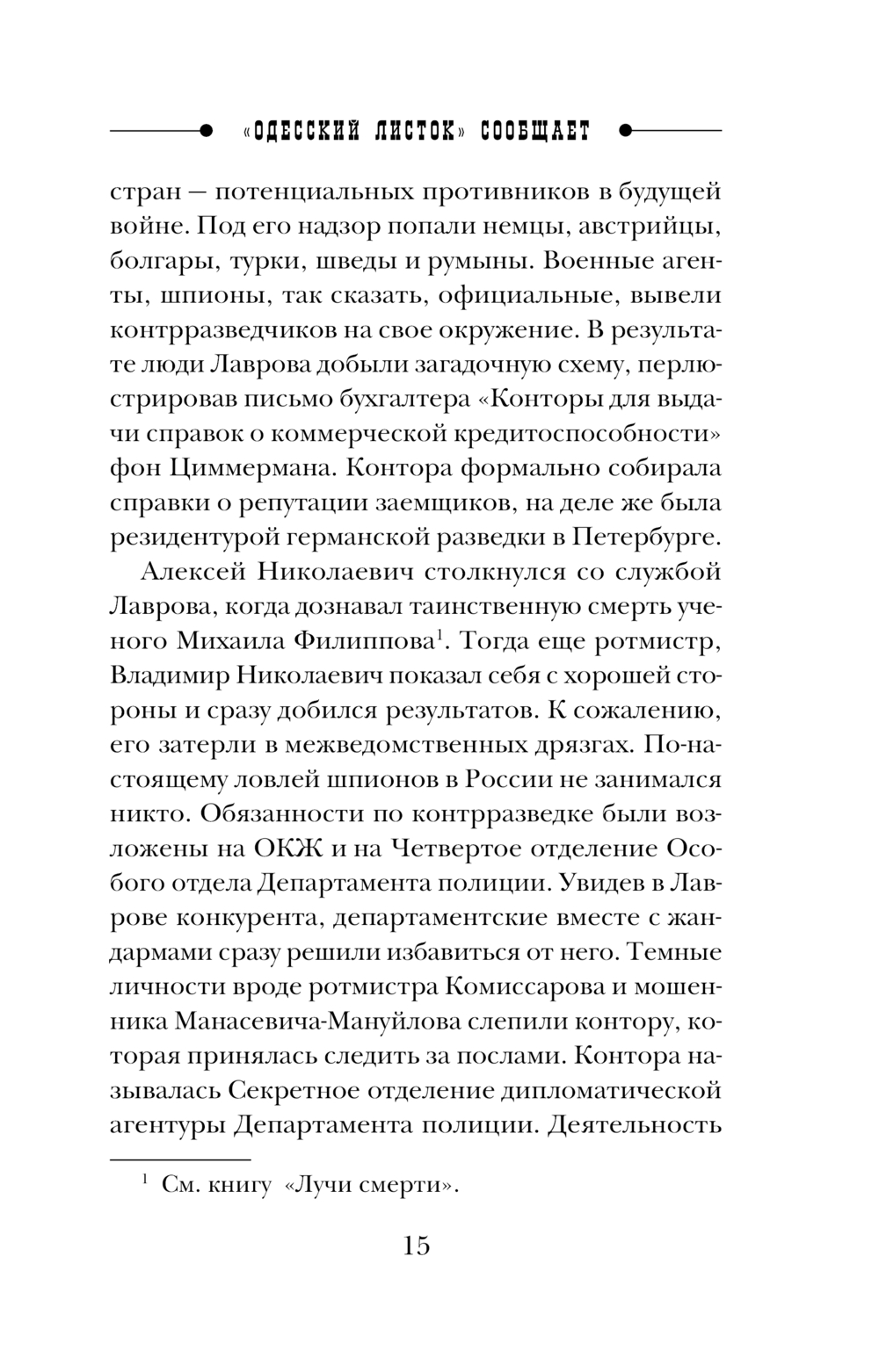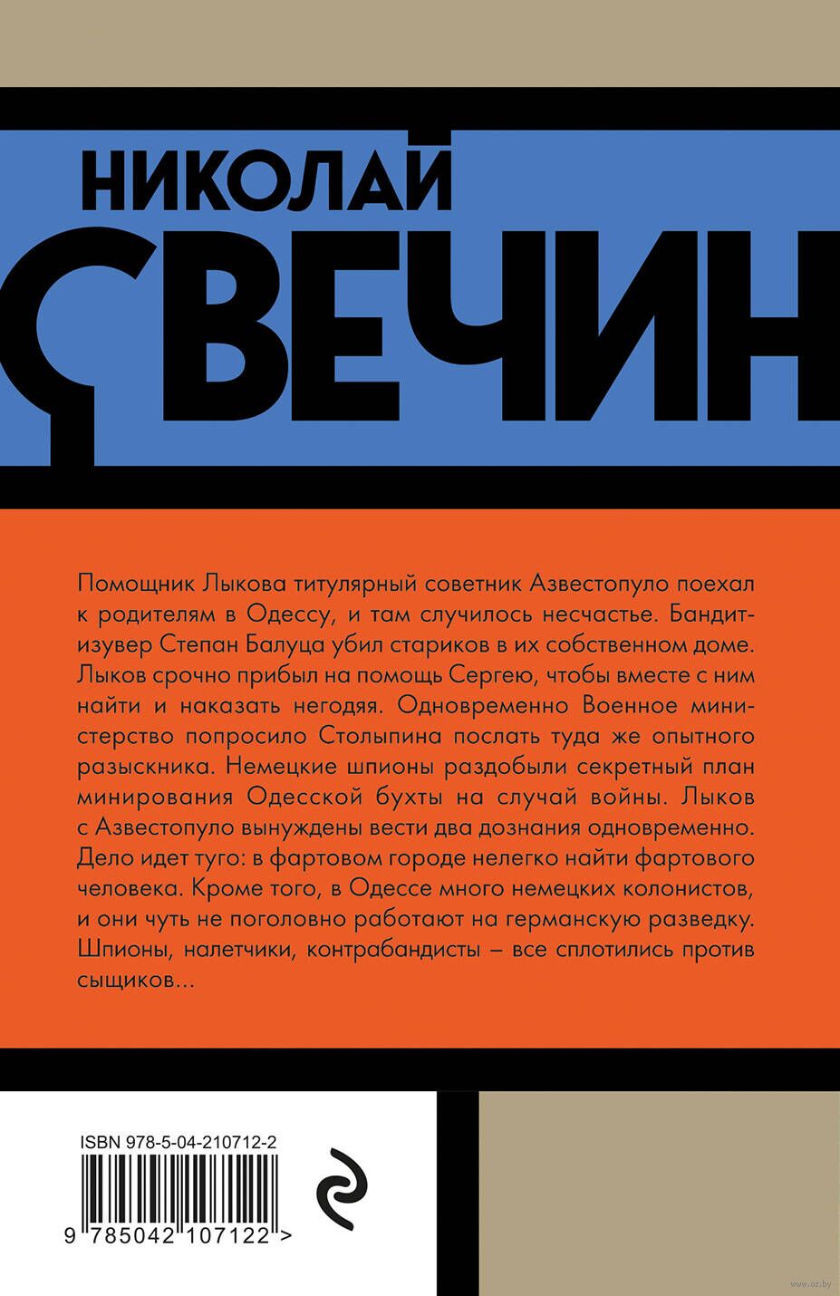 Помощник Лыкова титулярный советник Азвестопуло поехал к родителям в Одессу, и там случилось несчастье. Бандит-изувер Степан Балуца убил стариков в их собственном доме. Лыков срочно прибыл на помощь Сергею, чтобы вместе с ним найти и наказать негодяя. Одновременно Военное министерство попросило Столыпина послать туда же опытного розыскника. Немецкие шпионы раздобыли секретный план минирования Одесской бухты на случай войны. Лыков с Азвестопуло вынуждены вести два дознания одновременно. Дело идет туго: в фартовом городе нелегко найти фартового человека. Кроме того, в Одессе много немецких колонистов, и они чуть не поголовно работают на германскую разведку. Шпионы, налетчики, контрабандисты – все сплотились против сыщиков…