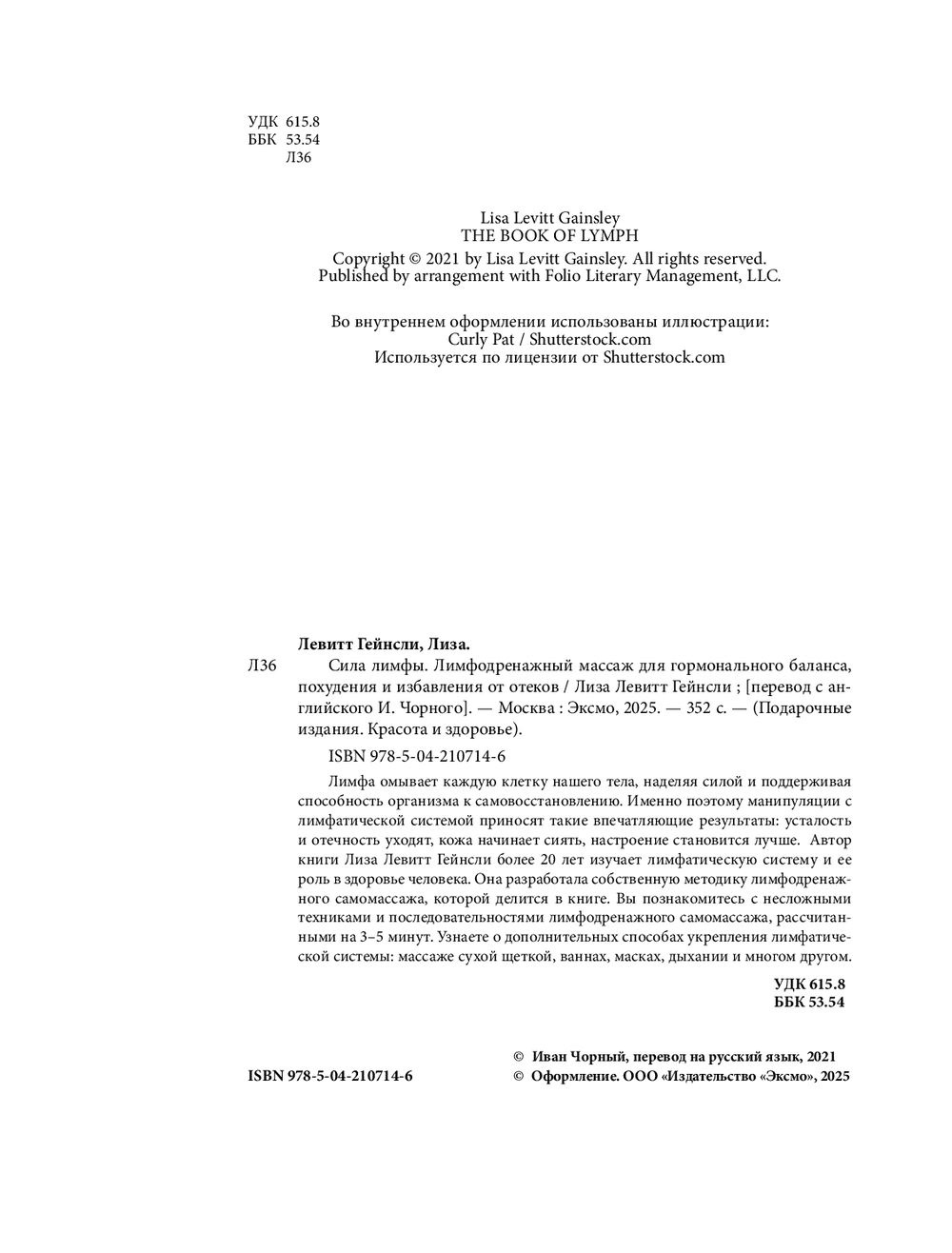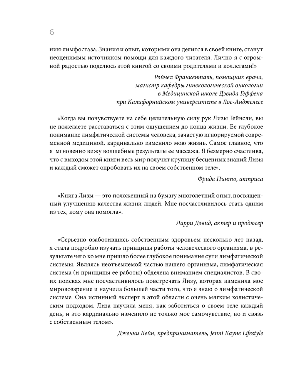 Автор книги, Лиза Левитт Гейнсли более 20 лет изучает лимфатическую систему и ее роль в здоровье человека. Она разработала собственную методику лимфодренажного самомассажа, которой делится в книге. Вы познакомитесь с несложными техниками и последовательностями лимфодренажного самомассажа, рассчитанными на 3-5 минут. Узнаете о дополнительных способах укрепления лимфатической системы: массаже сухой щеткой, ваннах, масках, дыхании и многом другом.