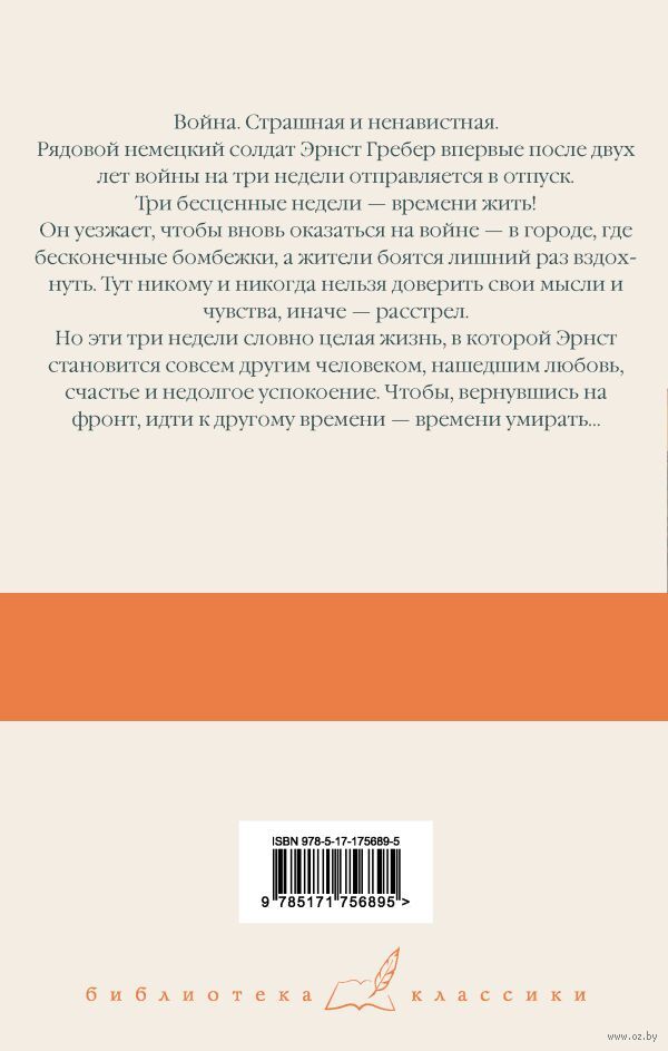 Но эти три недели словно целая жизнь, в которой Эрнст становится совсем другим человеком, нашедшим любовь, счастье и недолгое успокоение. Чтобы, вернувшись на фронт, идти к другому времени – времени умирать…