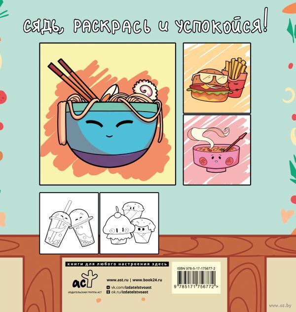 Аппетитная пицца, соблазнительный торт и милашки-пельмешки – каждая страница этой раскраски наполнена уютом, гастрономическим наслаждением и забавными подписями. Здесь нет правил и суеты, только вы, сладкие картинки и возможность отвлечься от повседневного стресса.