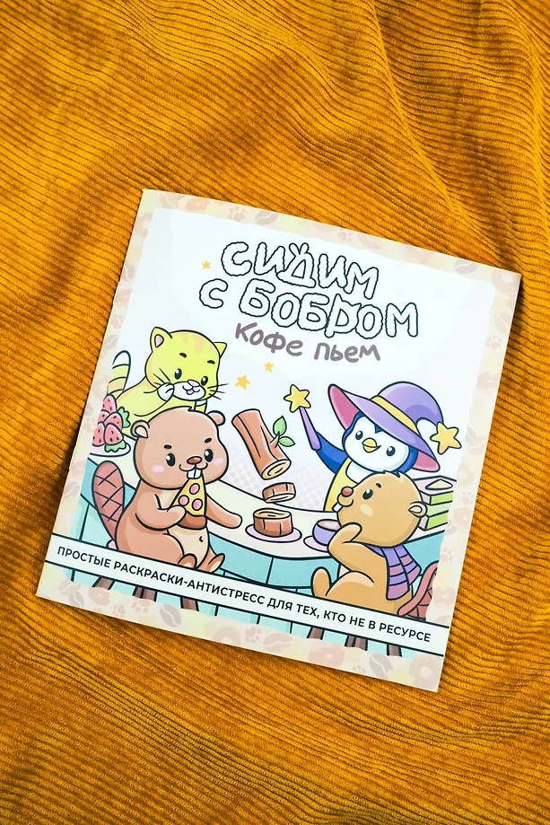 "Сидим с бобром кофе пьем" – антистресс-раскраска для взрослых, которым нужен уютный перерыв и немного позитива.
