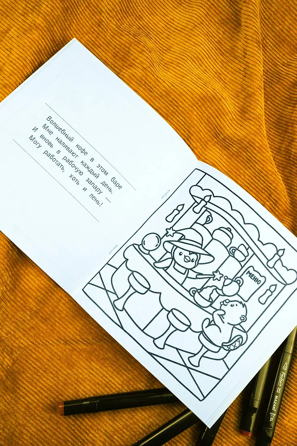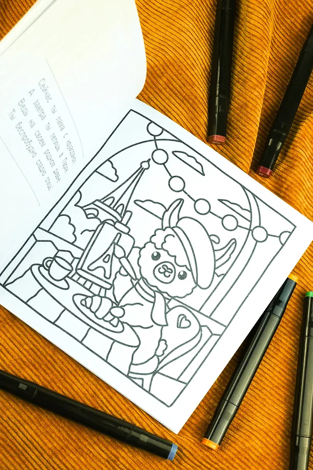 Возьмите маркеры, цветные карандаши или акварель, добавьте нежных оттенков и позвольте себе расслабиться. Для лучшего результата подложите лист бумаги между страниц. Здесь нет дедлайнов и обязательств – только вы, чашка любимого напитка и творческий отдых.