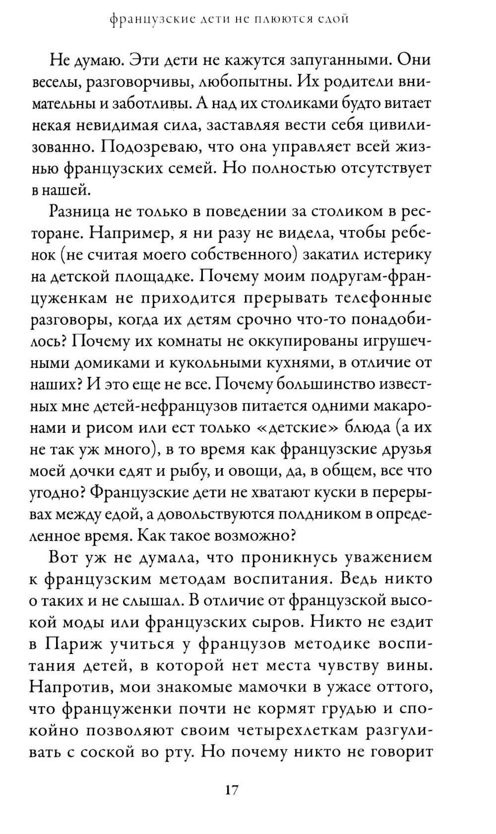 Почему французы, в отличие от нас, не проводят часть ночи в попытках убаюкать своих малышей? Почему они не вмешиваются, когда взрослые общаются, и не устраивают истерик в магазинах игрушек? Почему спокойно ведут себя в ресторанах, едят взрослые блюда и способны без скандала выслушать родительское "нет"?