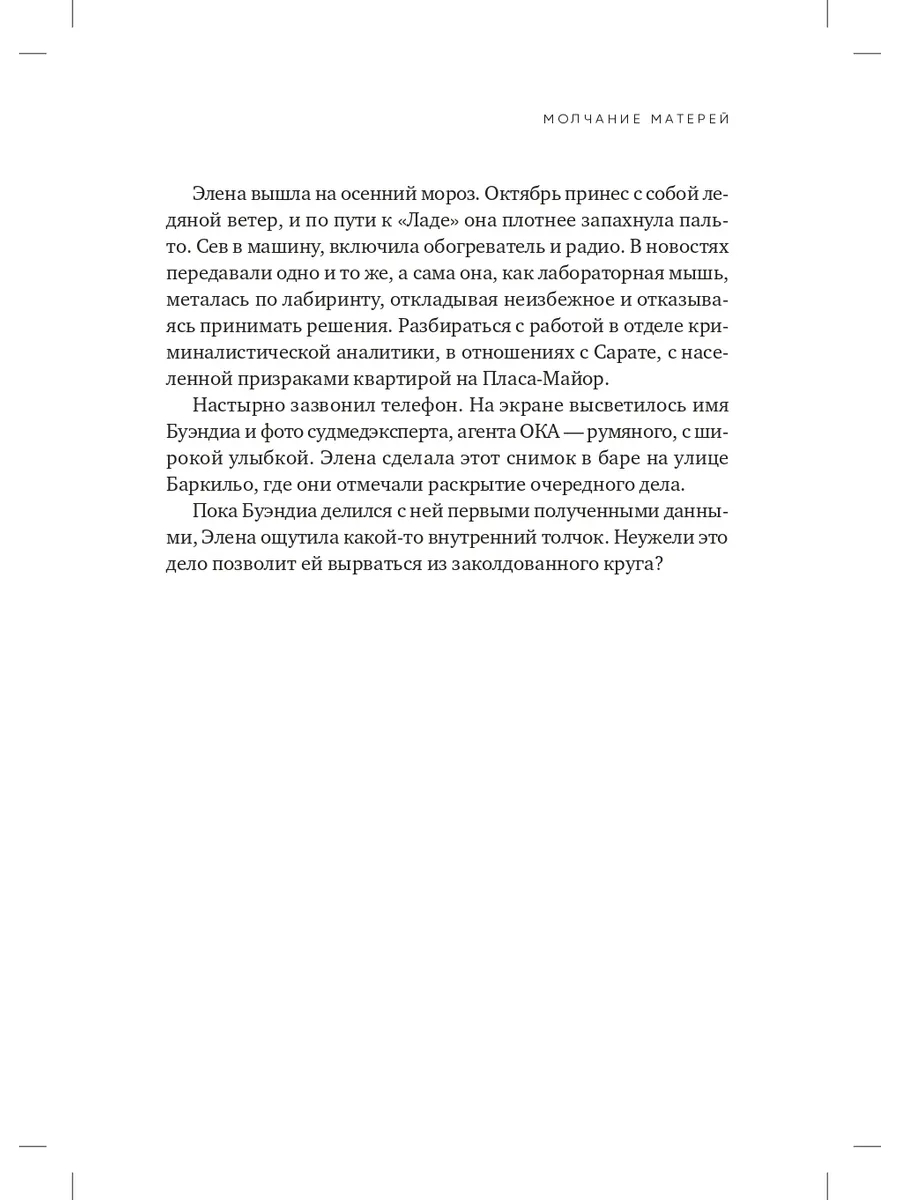 Расследуя эти жестокие преступления, команда инспектора Элены Бланко окажется в лабиринте предательств и преступлений, следы которых ведут на самые высокие этажи власти.