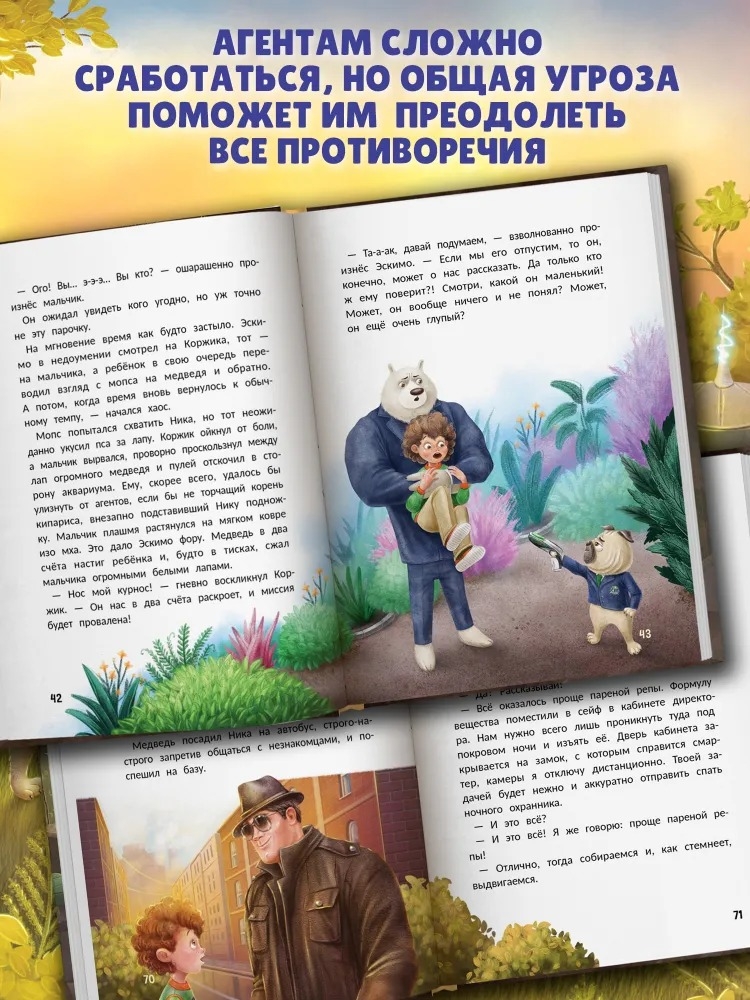Эскимо представлял, как будет отважно сражаться бок о бок с таким же, как он, большим и сильным белым медведем! А после успешного завершения миссии они с напарником будут вместе пить чай, обсуждать приключения и, конечно, станут дружной непобедимой командой. Но мечты агента разбиваются вдребезги, когда он узнаёт, что ему предстоит работать с маленьким, ворчливым и саркастичным... мопсом!