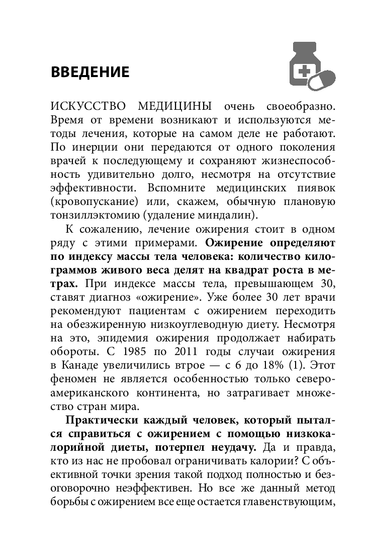 Искусство медицины очень своеобразно. Время от времени возникают методы лечения, которые на самом деле не работают. По инерции эти методы передаются от одного поколения врачей к последующему и сохраняют жизнеспособность удивительно долго, несмотря на отсутствие их эффективности. К сожалению, лечение ожирения стоит в одном ряду с этими примерами. Уже более тридцати лет врачи рекомендуют пациентам с ожирением переходит на обезжиренную, низкоуглеводную диету. Несмотря на это, эпидемия ожирения продолжает набирать обороты.