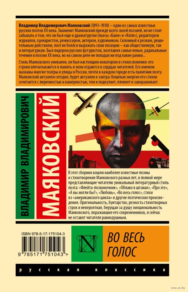 В этот сборник вошли наиболее известные поэмы и стихотворения Маяковского разных лет, в полной мере представляющие читателю уникальный стиль поэта: "Флейта-позвоночник", "Облако в штанах", "Про это", "А вы могли бы?", "Любовь", "Во весь голос", стихи из "американского" цикла и др. Оригинальность, бунтарство, резкость стихотворных строк и невероятная, берущая за душу эмоциональность Маяковского, поражавшие его современников, и сейчас не оставят читателя равнодушным.
