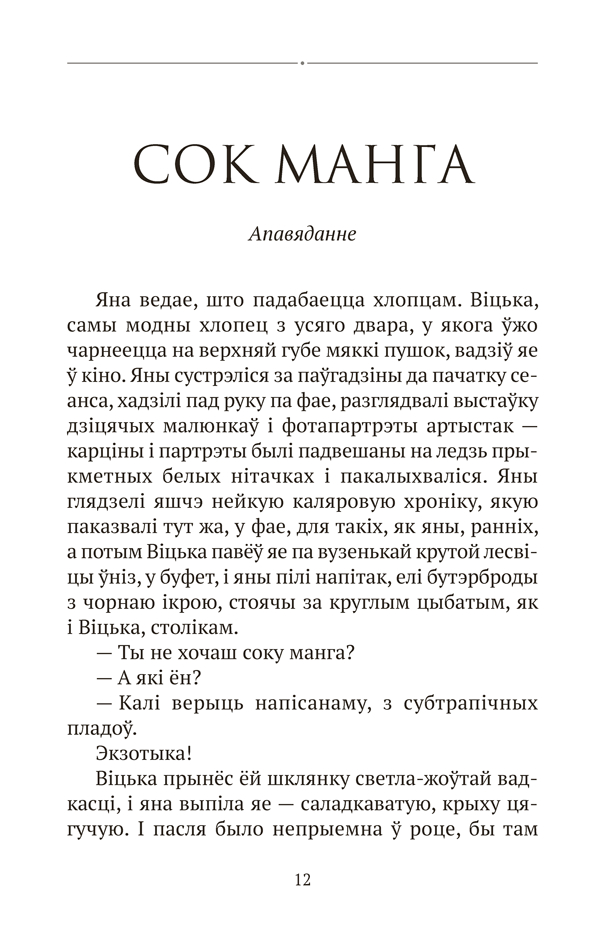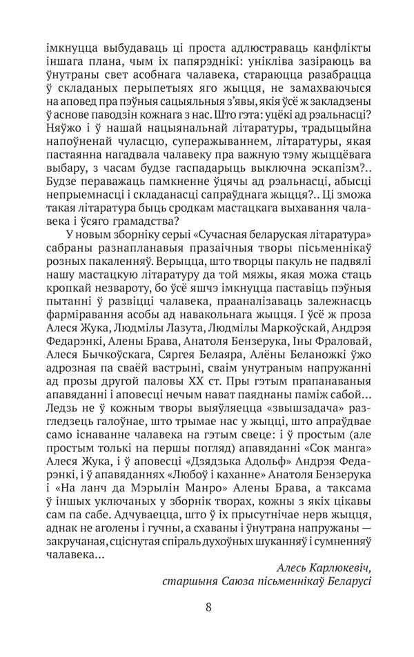 Новая кніга з серыі "Сучасная беларуская літаратура" сабрала прозу пісьменнікаў некалькіх пакаленняў. Невялікія творы прысвечаны невычэрпнай тэме ўзаемаадносін паміж людзьмі і духоўных пошукаў чалавека. Аўтары паказваюць, як па-рознаму можа праяўляцца любоў і як яна ўплывае на лёс людзей. Апавяданні ў прафесійным агучванні можна праслухаць з дапамогай QR-кодаў.