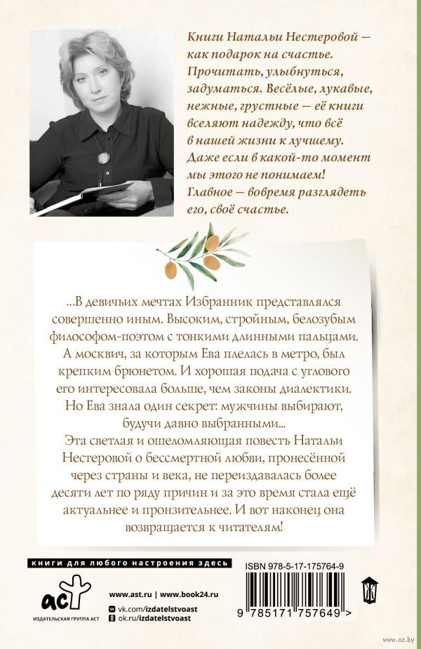 Эта светлая и ошеломляющая повесть Натальи Нестеровой о бессмертной любви, пронесённой через страны и века, не переиздавалась более десяти лет по ряду причин и за это время стала еще актуальнее и пронзительнее. И вот наконец она возвращается к читателям!