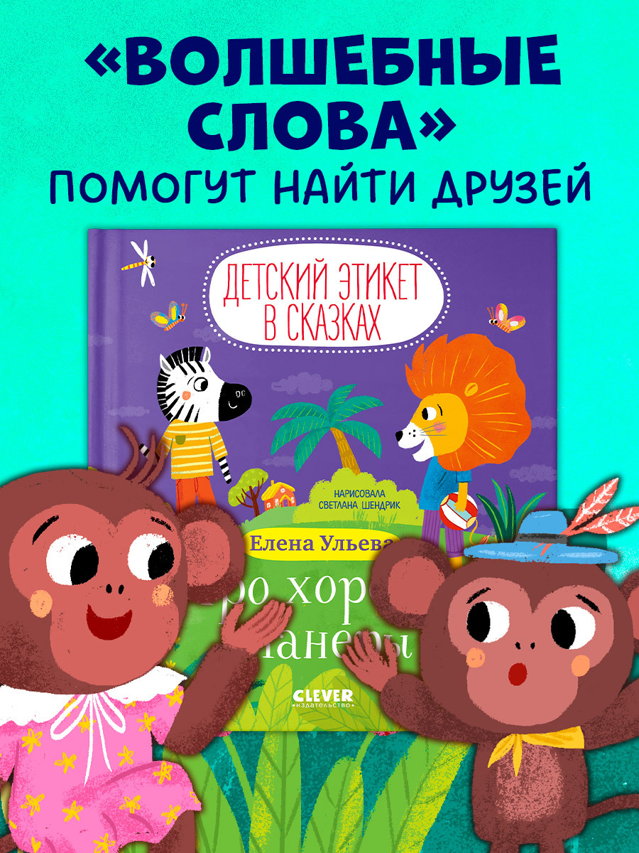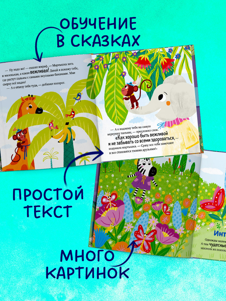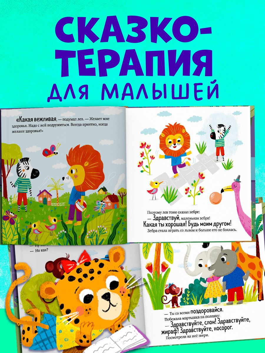 Как зебре удалось подружиться со львом? Мама научила зебру, что нужно поздороваться. "Здравствуйте" – это волшебное слово. Мартышке оно тоже помогло завести друзей. А еще сказки познакомят с такими волшебными словами, как "до свидания", "извините", "спасибо".