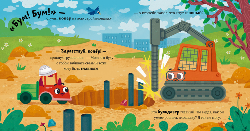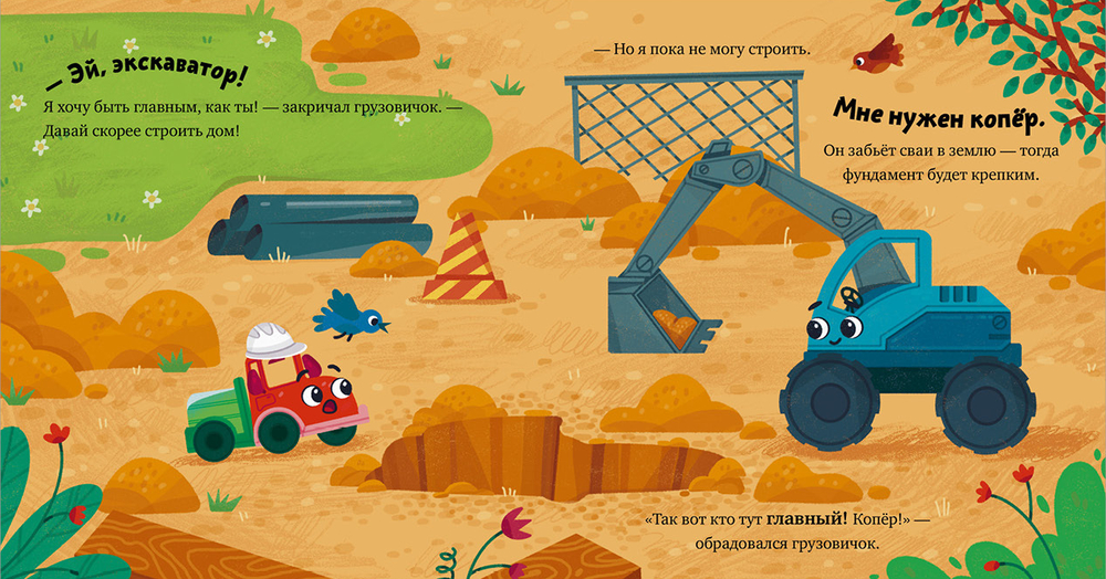 Однажды маленький грузовичок попал на строительную площадку. Целый день он бродил по ней и спрашивал каждую встречную машину: кто из них самый главный? Может, это высокий подъемный кран с цепким крюком? Или экскаватор – большой трактор с ковшом? Или все-таки самосвал с вместительным кузовом?