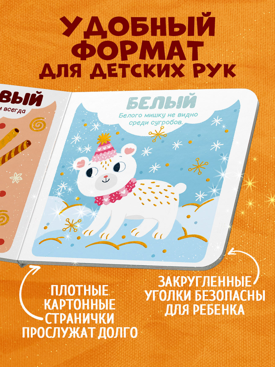 Книжка "Цвета" сделана из картона, у нее прочные странички, их легко листать маленькими ручками. Краешки книги закруглены и безопасны для малышей.