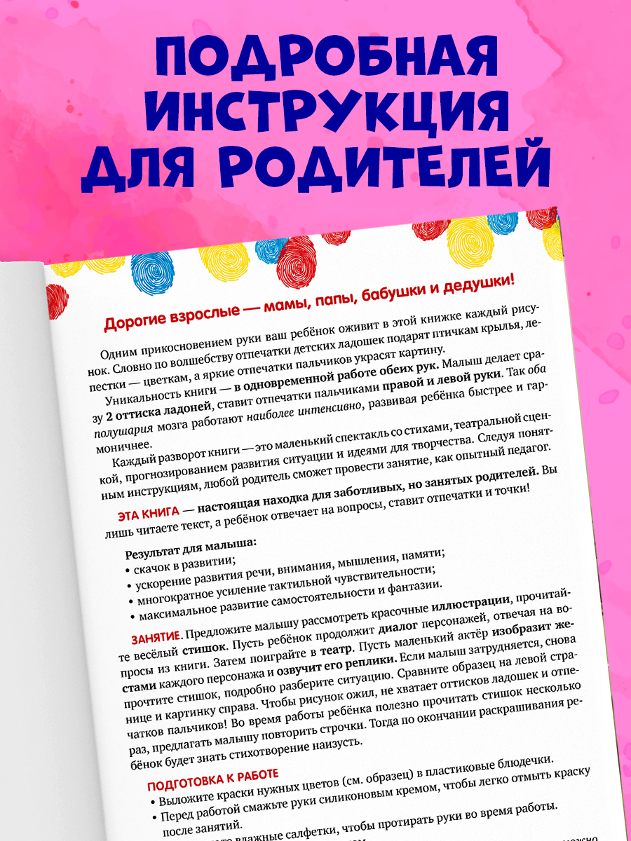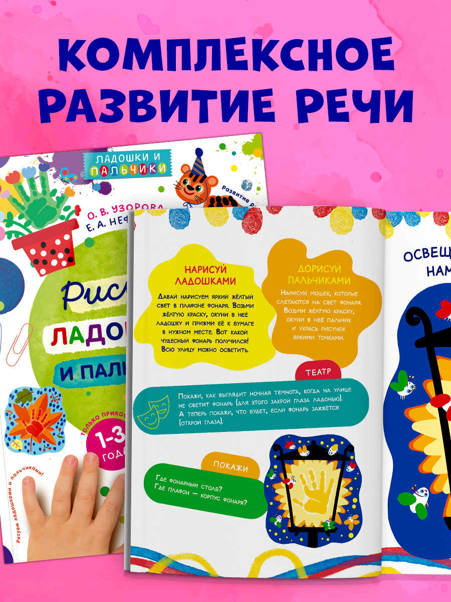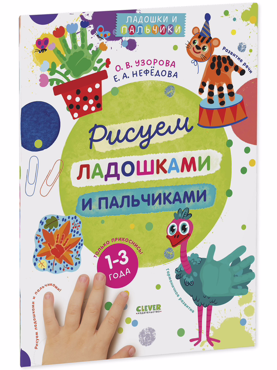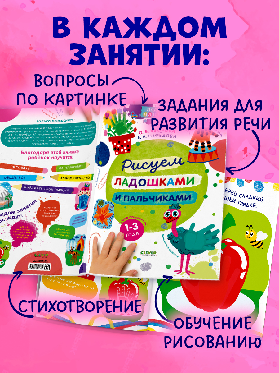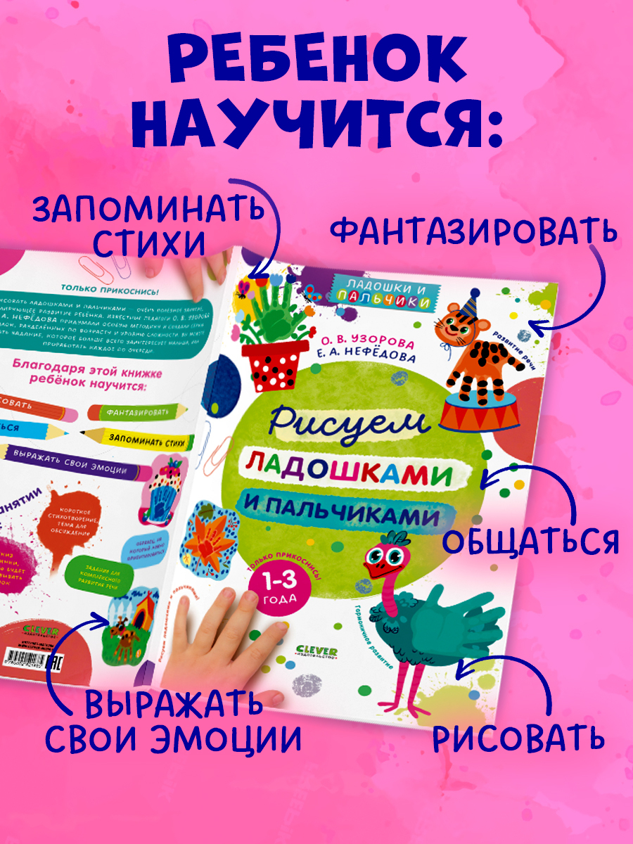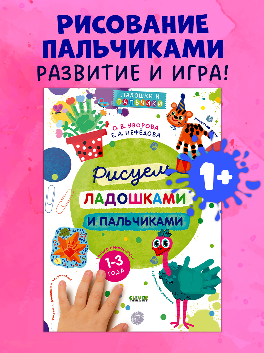Рисовать ладошками и пальчиками – очень полезное занятие, стимулирующее развитие мелкой моторики. Известные педагоги О. В. Узорова и Е. А. Нефедова придумали особую методику и создали серию рисовалок. Вы можете выбрать задание, которое больше всего заинтересует малыша, или проработать все по очереди. Каждый разворот в книжке – это полноценное занятие по рисованию и для комплексного развития. За одно занятие по книге "Рисуем ладошками и пальчиками. 1–3 года" ребенок дорисует эскиз картинки, выучит короткое ритмичное стихотворение.