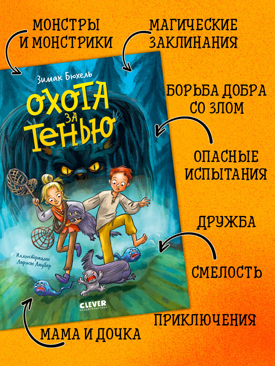 "Охота за Тенью" – захватывающее чтение для школьников! Легко и увлекательно написанная история с живыми иллюстрациями заинтересует всех, кто любит сказки, приключения, рассказы о монстрах, волшебство и магию.