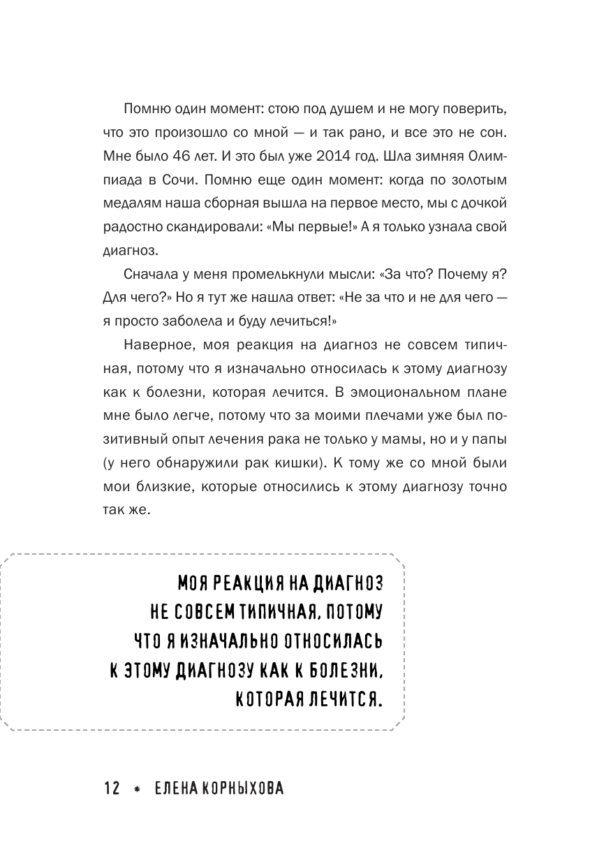Рак молочной железы – общемировая проблема, он уверенно занимает первое место среди онкологических заболеваний у женщин. Елена Корныхова не понаслышке знает, что такое диагноз РМЖ, и как она говорит, благодаря этому диагнозу нашла себя.
