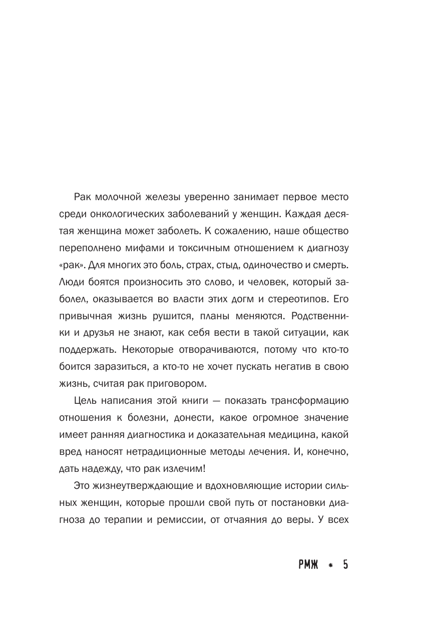 Перед вами жизнеутверждающие и вдохновляющие истории сильных женщин, которые прошли свой путь от постановки диагноза до терапии и ремиссии. Вы встретите женщин разных возрастов и из разных уголков, каждая из которых делится своими переживаниями, страхами.