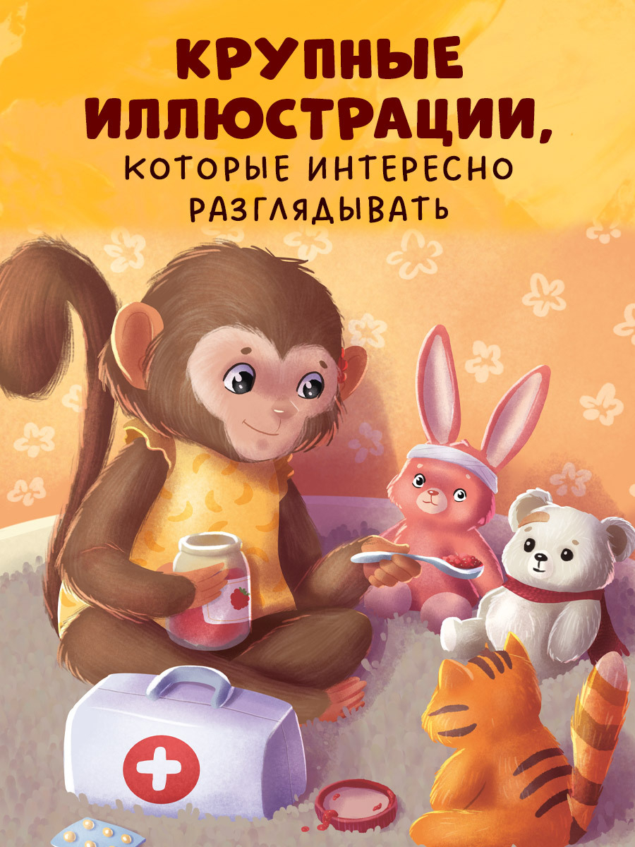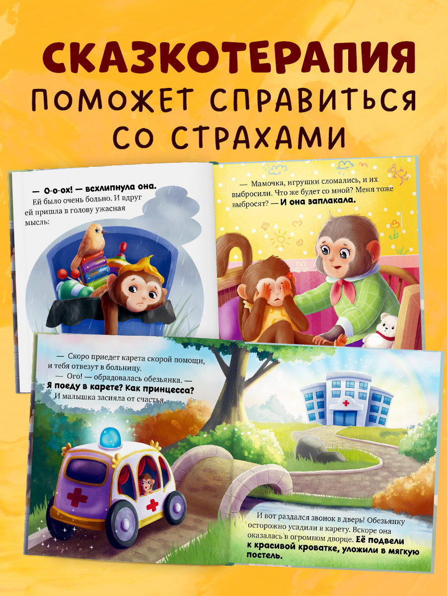Маленькая обезьянка очень боялась врачей и не слушалась маму. Однажды она убежала гулять без спросу. На улице шел дождь, обезьянка сильно замерзла и заболела. Получится ли у нее победить страх и отправиться в больницу?