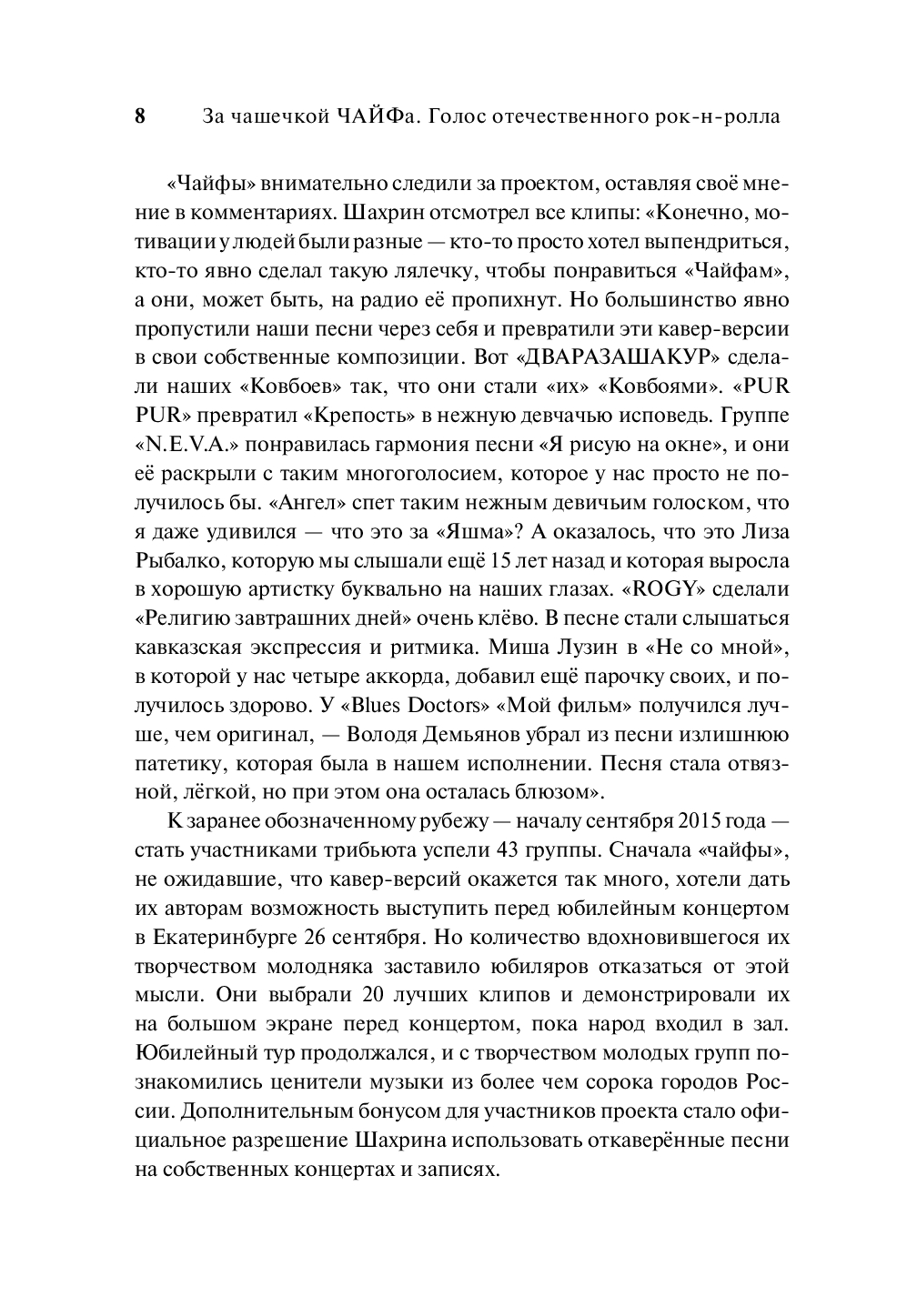 В книге "За чашечкой ЧАЙФа. Голос отечественного рок-н-ролла" Дмитрий Карасюк, известный исследователь уральского рока, прослеживает путь одной из самых популярных российских рок-групп от школьных репетиций до стадионных концертов. Читатель узнает историю коллектива, ставшего символом целого поколения. Издание содержит редкие фотографии, многие из которых публикуются впервые, поэтому его необходимо иметь всем поклонникам группы. Яркий и живой язык автора погружает в атмосферу творчества и позволяет почувствовать дух времени.