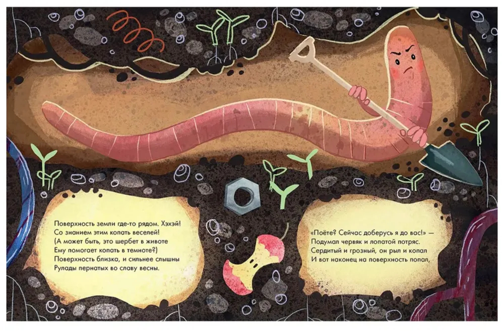 Первый вестник весны – весёлое пение птиц. Но не всем нравятся их трели! Пять суток подряд они не давали червяку выспаться. Он так разозлился, что решил пойти к птицам и попросить их прекратить шум. Но по пути его ждали опасные встречи… Как бы не попасть к соседу на обед!Весёлая история в стихах понравится малышам, которые любят насекомых.
