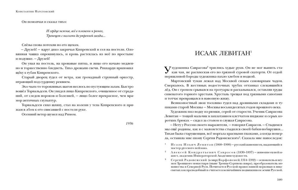 Повести и рассказы, вошедшие в сборник, точно передают атмосферу времени и характеры людей. "Судьба Шарля Лонсевиля" повествует о трагедии пленного наполеоновского офицера, волею судеб оказавшегося на пушечном заводе в Петрозаводске. Биографические повести "Орест Кипренский" и "Исаак Левитан" раскрывают перед нами картины жизни и творчества виднейших русских живописцев через призму собственного восприятия Паустовским изобразительного искусства. Очерк "Разливы рек" посвящён нескольким дням из жизни М. Ю. Лермонтова по пути на Кавказ и встрече с его музой, Марией Щербатовой. В произведениях Паустовского нет острого конфликта или головокружительных приключений, но есть внутренняя красота человека, живые эмоции и неподдельные чувства. И от этого созданные автором образы становятся ближе и понятнее читателю.