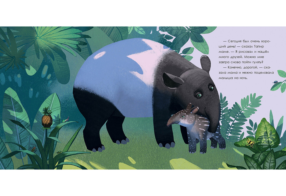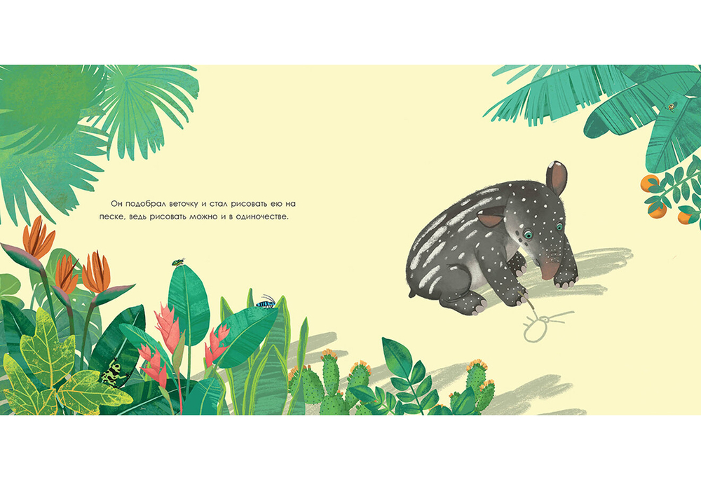 Маленький тапир очень хотел найти друзей. Но все звери, с которыми он собирался поиграть, отказали ему. Малышу стало совсем грустно и одиноко. И тогда он начал рисовать…