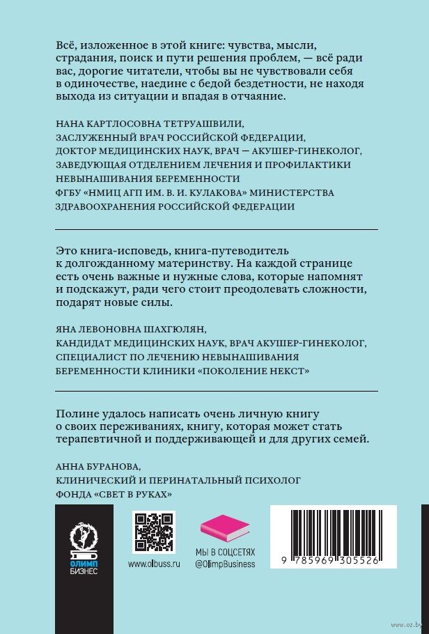 Книга адресована тем, кто столкнулся со сложностями в планировании семьи, кто переживает потерю или проходит через сложную беременность.