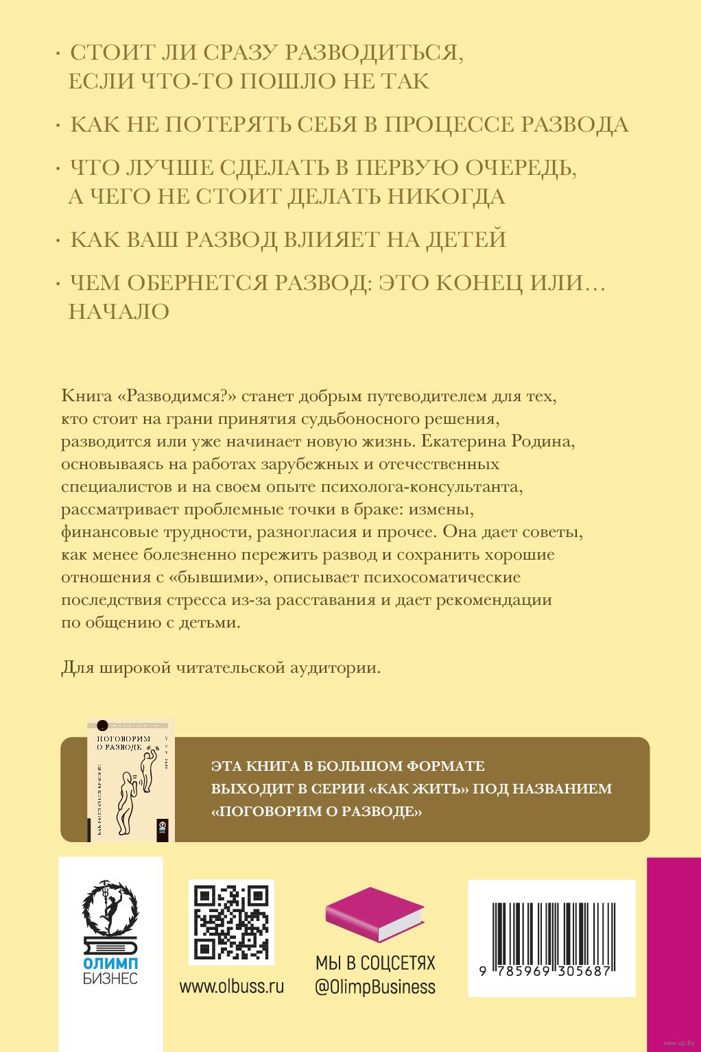 Книга "Разводимся?" станет добрым путеводителем для тех, кто стоит на грани принятия судьбоносного решения, разводится или уже начинает новую жизнь.