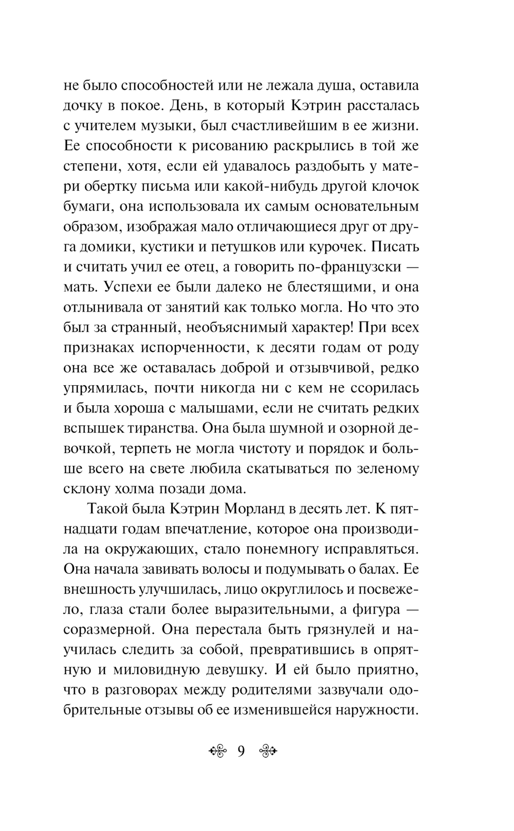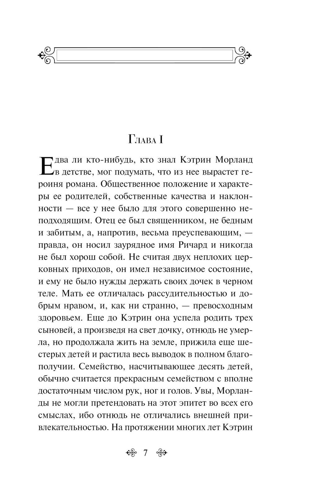 "Нортенгерское аббатство" – самая озорная ее книга, изящная ирония над канонами любовного романа. Родители Кэтрин не слишком богаты, но отнюдь не бедны. Она не слишком красива, но и не дурна собой. Кэтрин наивна, но лишь из-за недостатка жизненного опыта. Она обожает готические романы, и вся ее жизнь, как ей кажется, полна мрачных тайн и загадок. И только благодаря любви героиня обретает новый взгляд на реальность, ей открываются неведомые прежде стороны жизни.