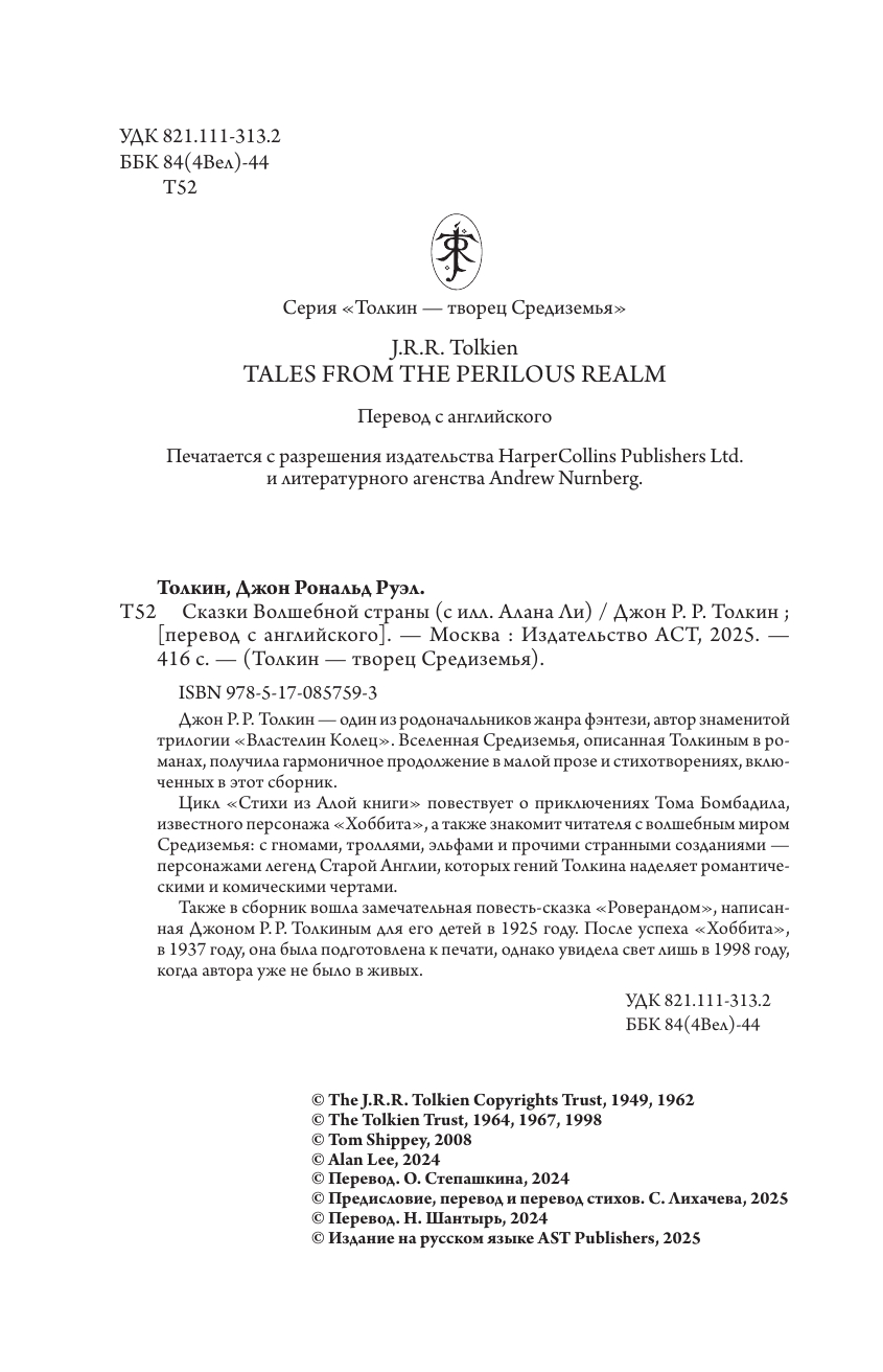 Джон P.P. Толкин – один из родоначальников жанра фэнтези, автор знаменитой трилогии "Властелин Колец". Вселенная Средиземья, описанная Толкиным в романах, получила гармоничное продолжение в малой прозе и стихотворениях, включенных в этот сборник.