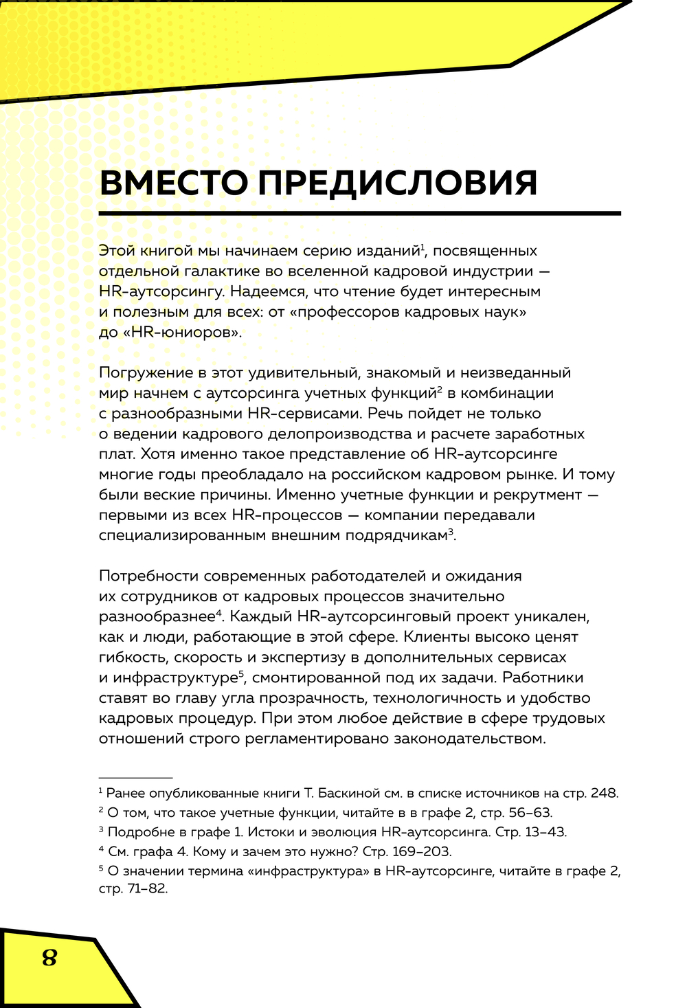 Татьяна Баскина в своей книге дает исчерпывающие ответы на эти и многие другие вопросы. Вы узнаете об истории, различных видах аутсорсинга HR-функций и бизнес-процессов, увидите сегодняшний ландшафт HR-аутсорсинговых решений заглянете "под капот" технологии аутсорсингового проекта. Источником вдохновения для книги стал 35-летний практический опыт ANCOR – лидера кадровой индустрии страны.