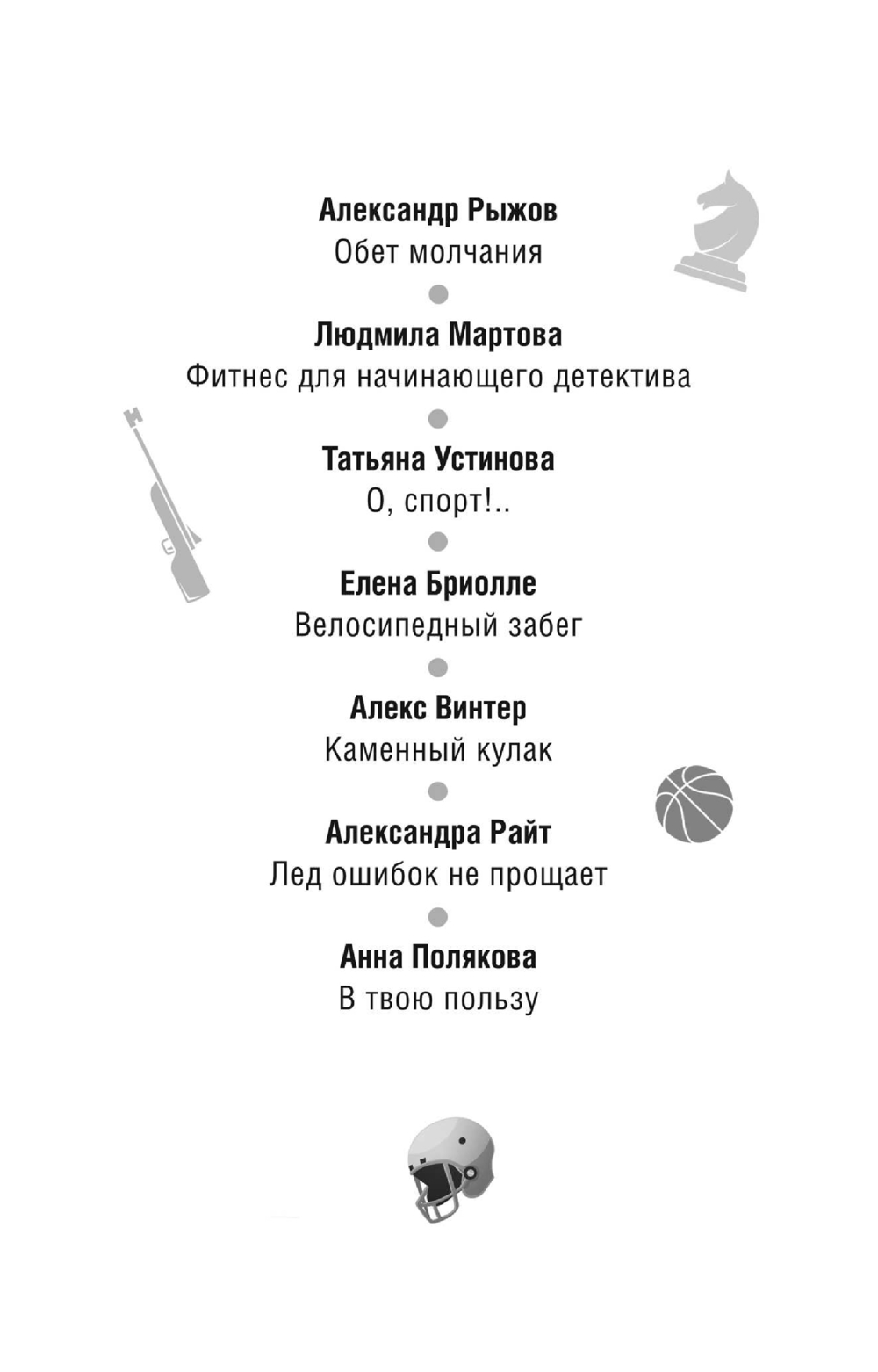 В мире спорта важны не только скорость, сила и стратегия, но и способность быстро принимать решения. Сборник "Спортивный детектив" приглашает читателей в увлекательное путешествие, где ринги, корты и ледовые арены становятся местом действия захватывающих остросюжетных историй. Каждый рассказ предлагает уникальный подход к разгадке тайн, переплетенных с соревнованиями, тренерскими хитростями и спортивной честью. Здесь атлеты становятся сыщиками, а их искусство перевоплощения, драйв и страсть к победе делают каждую историю яркой и насыщенной.