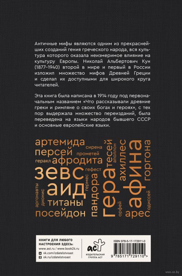 Эта книга была написана в 1914 году под первоначальным названием "Что рассказывали древние греки и римляне о своих богах и героях", с тех пор выдержала множество переизданий, была переведена на языки народов бывшего СССР и основные европейские языки.