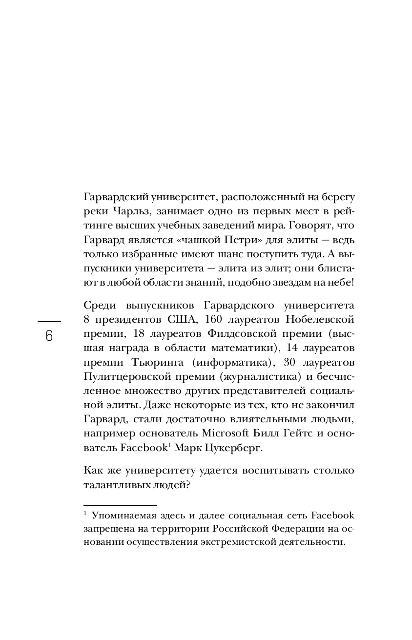 На эти и другие вопросы отвечает Вей Сюин – человек, посвятивший жизнь изучению феномена Гарварда. По мнению автора, одно из наиболее ярких отличий Гарварда в том, что он почти не спит. Даже в 4 утра коридоры, библиотеки и комнаты отдыха переполнены студентами, которые читают, конспектируют и о чем-то думают. Действительно ли в их жизни нет места отдыху или все дело в приоритетах?...