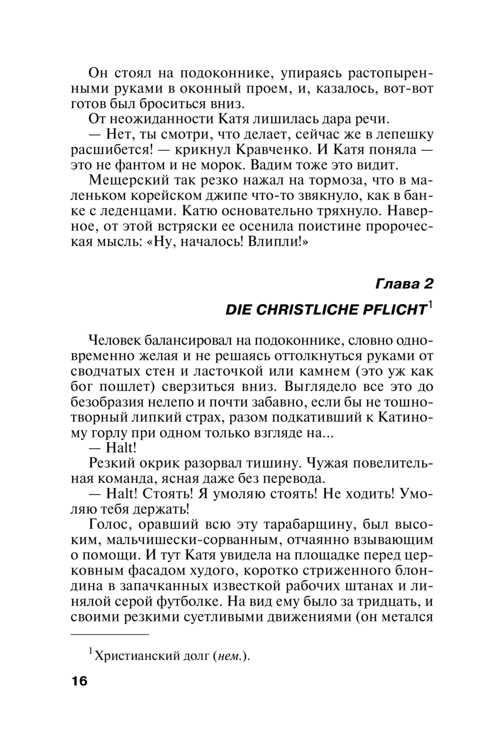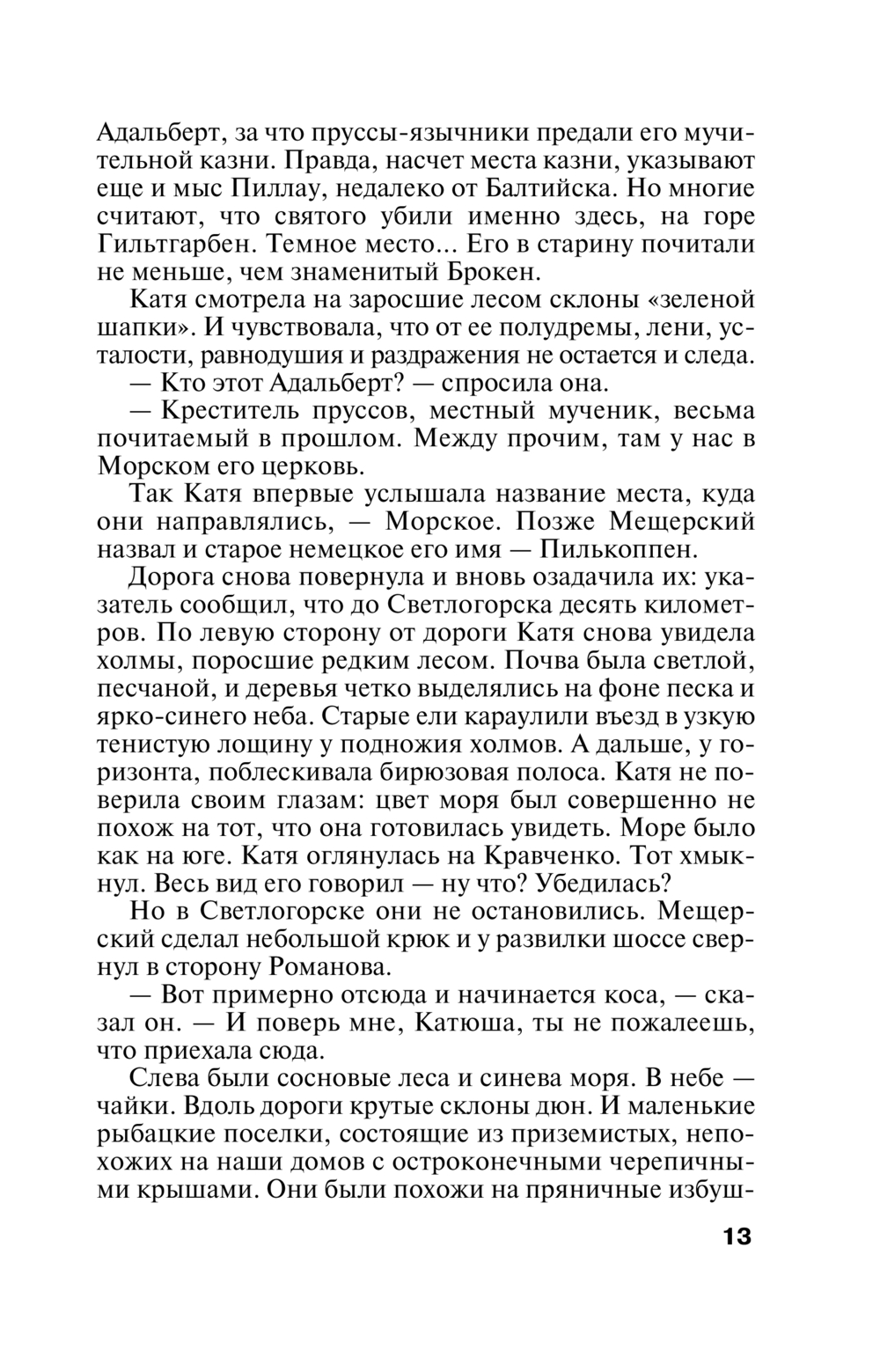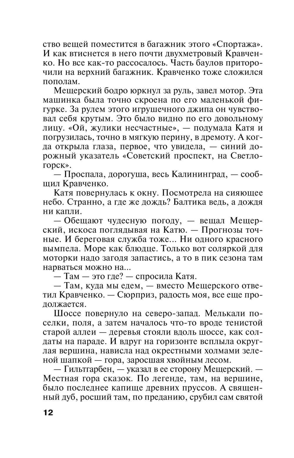 Странный отпуск получился у сотрудницы Пресс-центра УВД Кати Петровской. Вместе с мужем Вадимом Кравченко и их другом Сергеем Мещерским они приехали на прибалтийский курорт и в первый же день стали свидетелями свирепого и загадочного убийства. Этим дело не ограничилось – через несколько дней нашли мертвой девочку-подростка. Как выяснила Катя, такие "происшествия" с юными девушками здесь не в новинку. Но убийца, словно призрак, не оставляет никаких улик. А тут еще местные легенды о Водяном, мстящем людям, его мокрые следы регулярно обнаруживают на полу церкви. Сразу трое – Катя, Мещерский и местная жительница Марта – вычислили убийцу. Только Мещерский в момент озарения был на рыбалке в море, а Катя и Марта оказались лицом к лицу с обезумевшим маньяком...