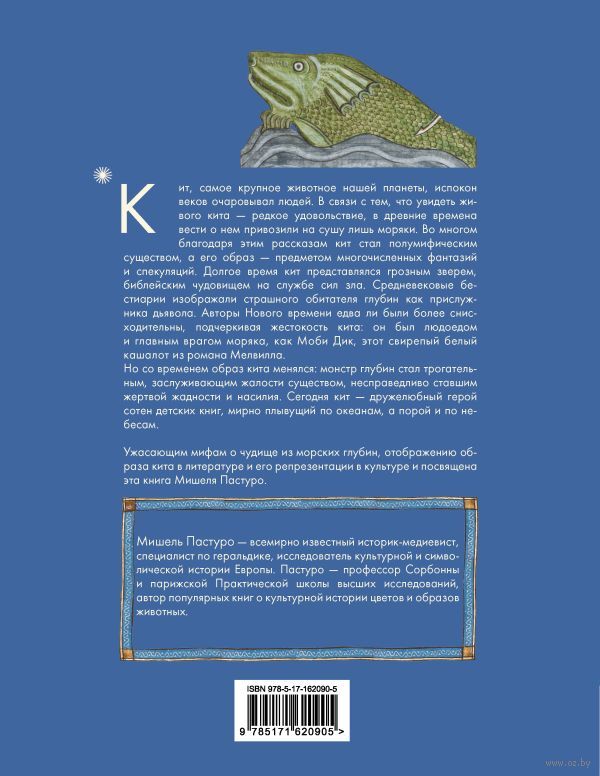 Ужасающим мифам о чудище из морских глубин, отображению образа кита в литературе и его репрезентации в культуре и посвящена эта книга Мишеля Пастуро.