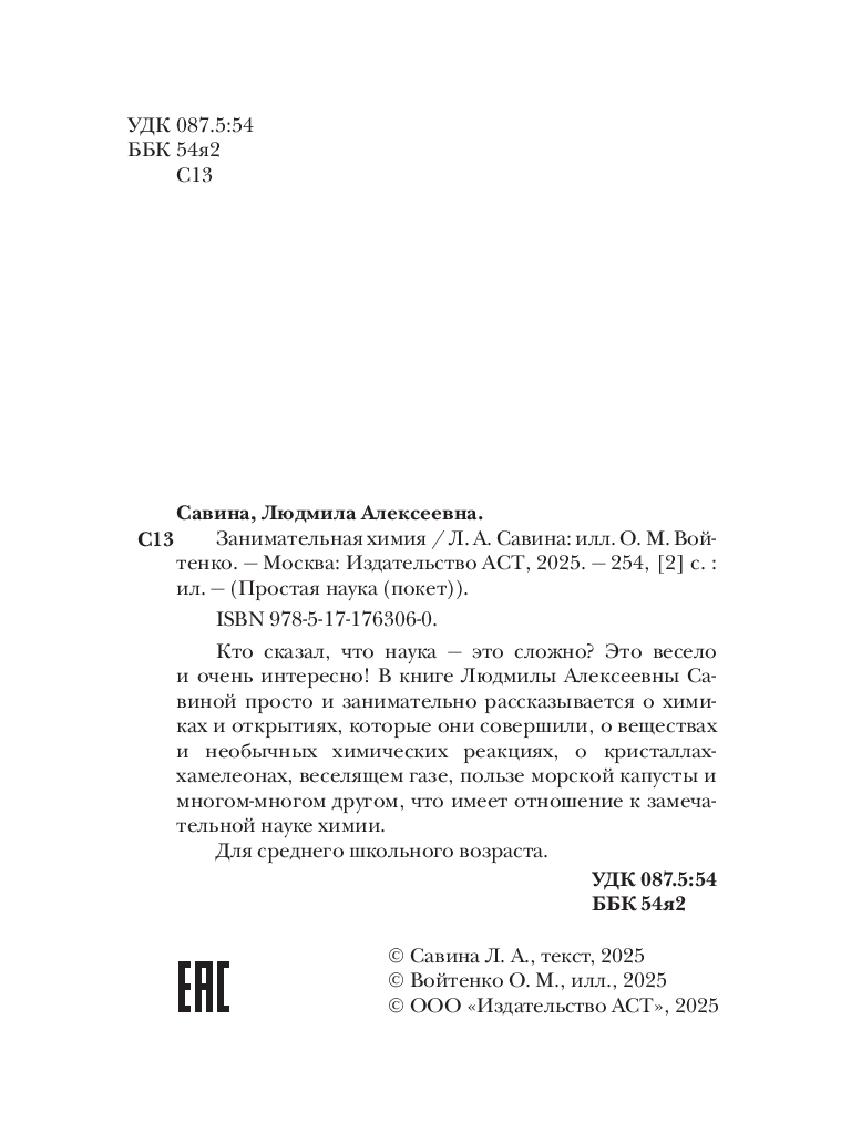 Кто сказал, что наука – это сложно? Это весело и очень интересно! В книге Людмилы Алексеевны Савиной просто и занимательно рассказывается о химиках и открытиях, которые они совершили, о веществах и необычных химических реакциях, о кристаллах-хамелеонах, веселящем газе, пользе морской капусты и многом-многом другом, что имеет отношение к замечательной науке химии.