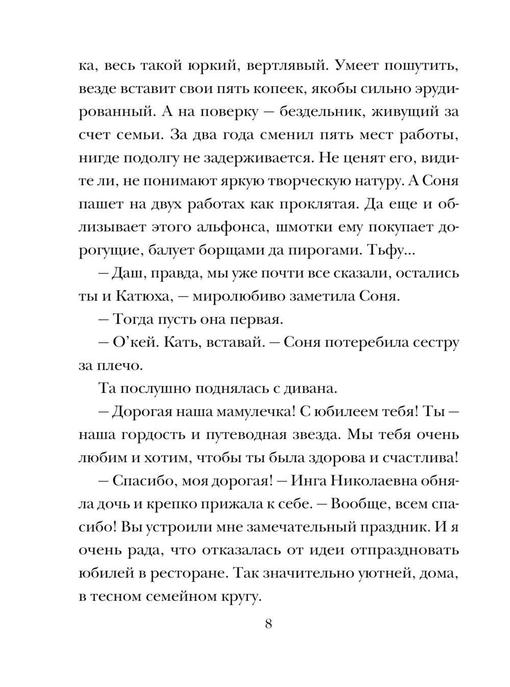 В московской квартире собралось большое и дружное семейство: три дочери, мужья старших – Сони и Кати – и глава семьи Инга Николаевна Бреславская. Зятья Ярослав и Альберт выходят в ближайший супермаркет и… не возвращаются. Сестры бьют тревогу, но телефоны обоих мужчин оказываются выключены. К следующему вечеру, обзвонив все больницы и морги, девушки обращаются в полицию. Начинаются безуспешные поиски. Младшая из сестёр, Даша, давно и безнадёжно влюблённая в Ярослава, мужа старшей сестры Кати, не находит себе места. Она пытается прийти на помощь следствию, и то, что она узнает о членах своей семьи, приводит ее в ужас…