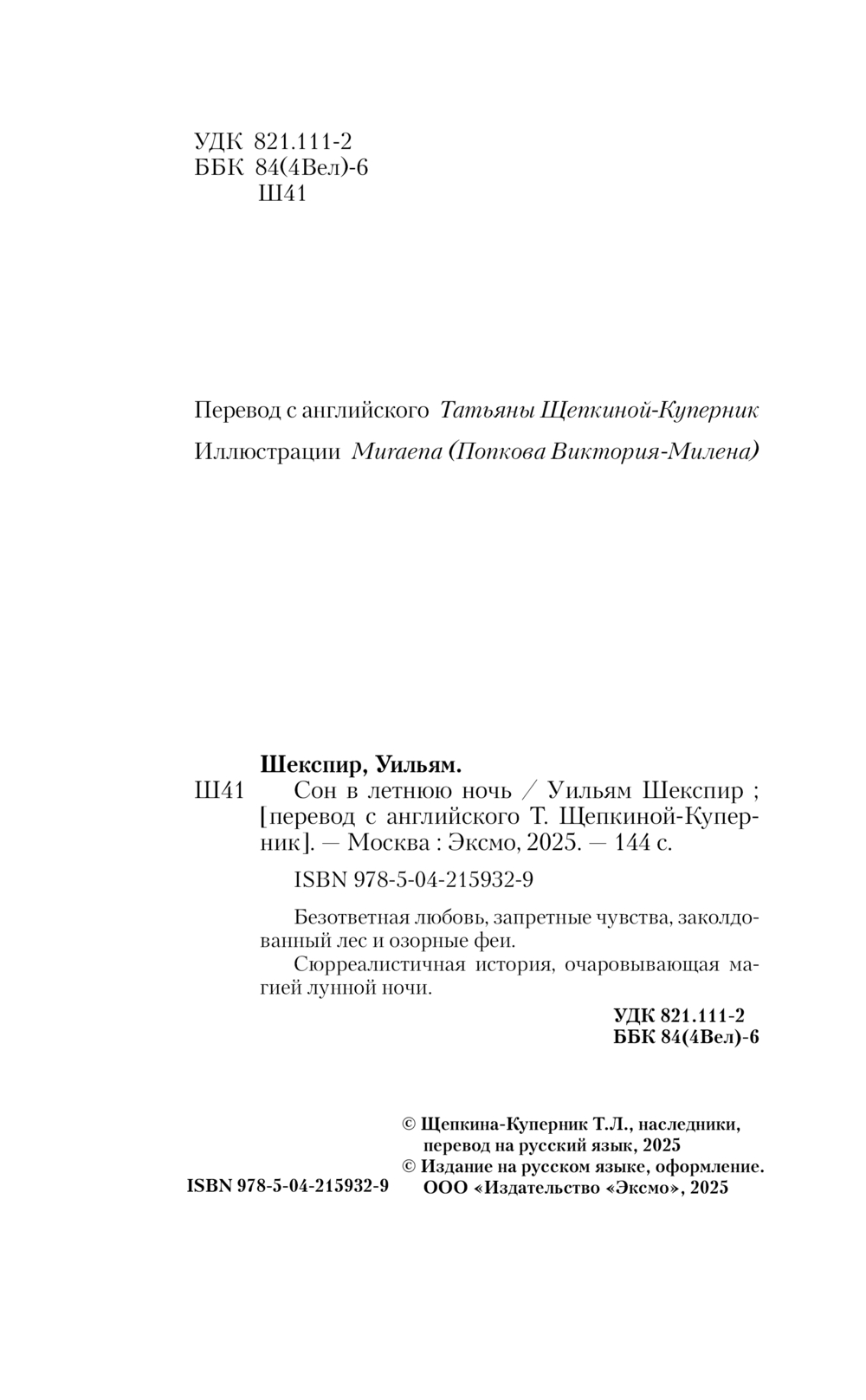 Эксклюзивные иллюстрации на обложке, форзаце и нахзаце. Эстетичное внутреннее оформление и крупный шрифт для комфортного чтения. Качественный, традиционный перевод от Татьяны Щепкиной-Куперник.