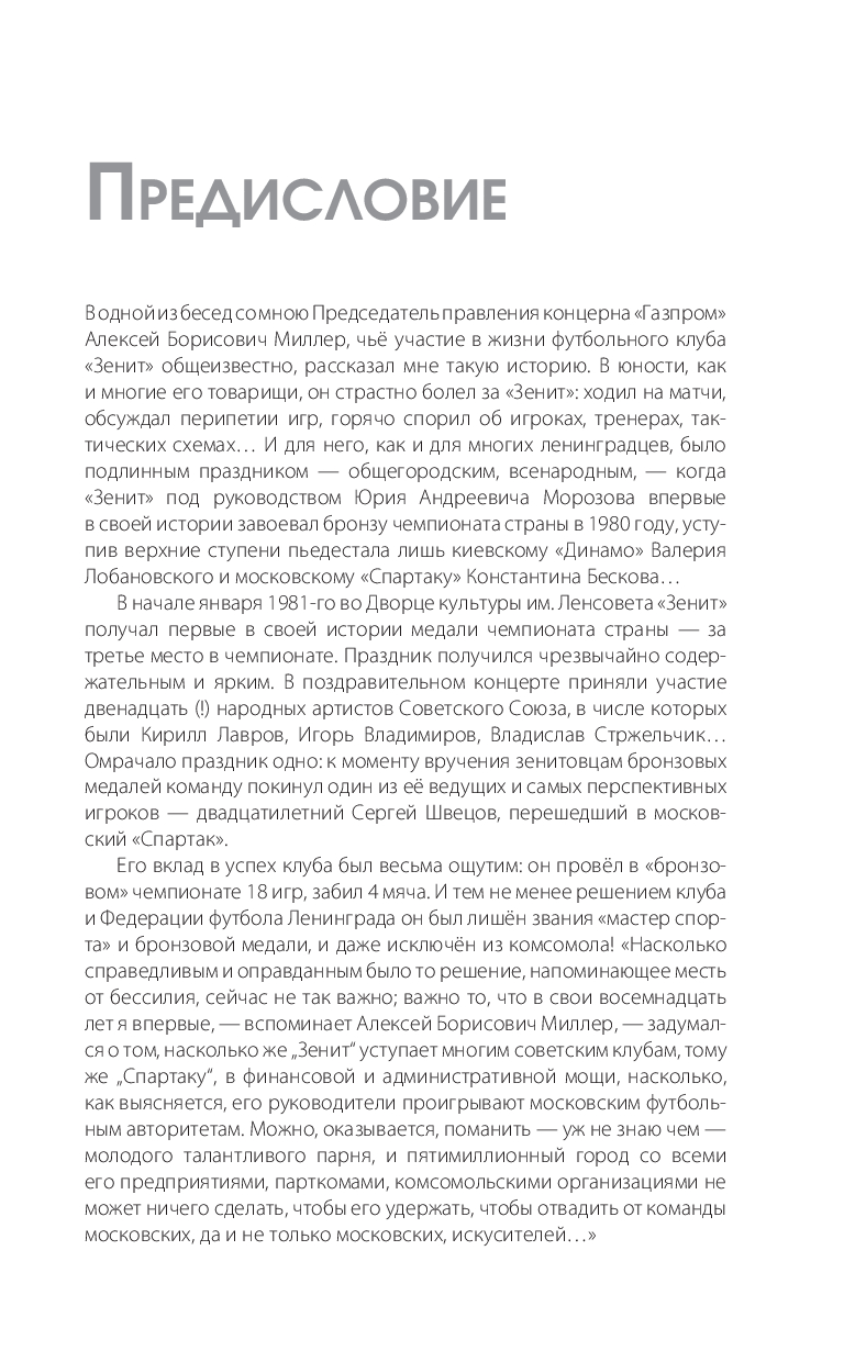 В 2025 году легендарному ФК "Зенит" исполняется 100 лет. Именно этому значимому событию приурочена книга, каждая страница которой посвящена невероятному российскому периоду в истории "Зенита". Это летопись об эпохе футбольного клуба с момента его становления и до наших дней. Здесь вы не найдете сухих фактов, эта книга – искренний и живой взгляд на трансформацию "Зенита" – от самобытного российского коллектива до лидера отечественного футбола и обладателя международных трофеев. На ее страницах вас ждут эксклюзивные материалы, интервью с легендарными игроками, тренерами и руководителями, а также детальный анализ ключевых матчей и событий, определивших судьбу клуба. Оценки одних и тех же событий порой разнятся, но именно это раскрывает живой и многогранный путь команды.