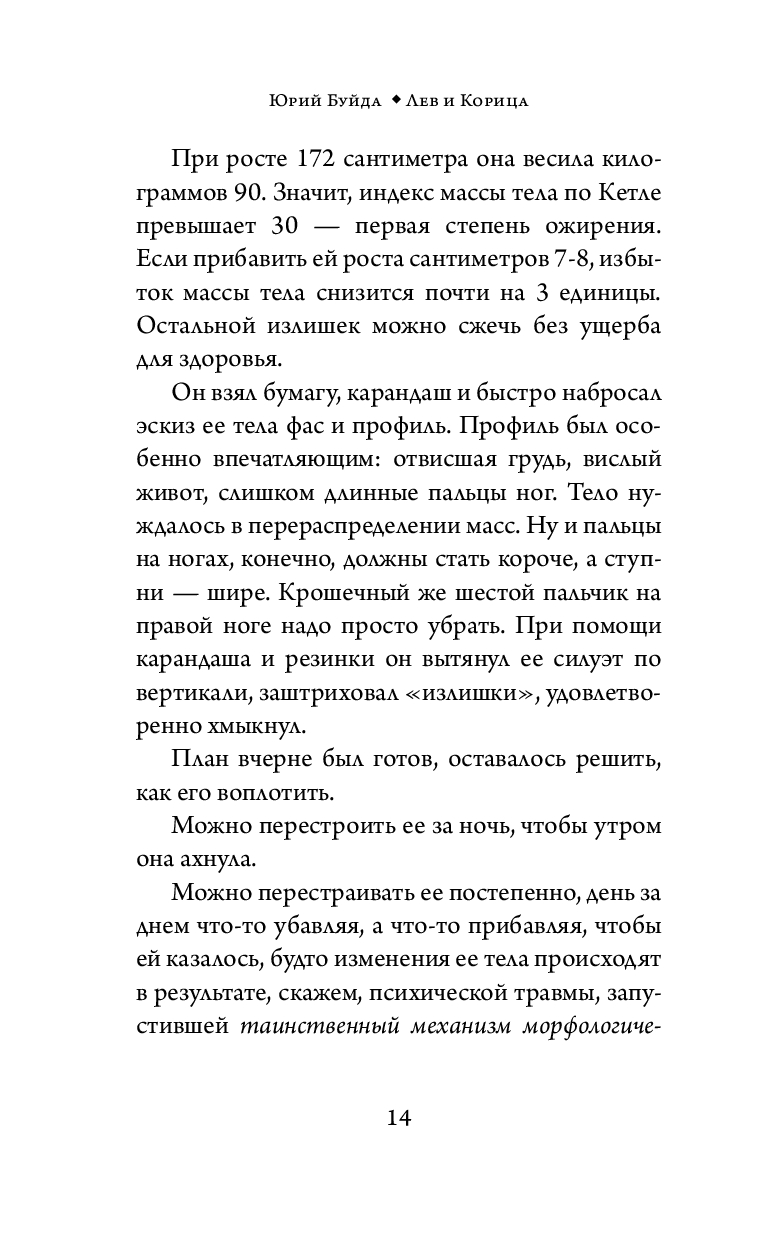 Роман "Лев и Корица" – изящная и озорная фантасмагория, действие которой в стремительном танце проносится по улицам Москвы, Парижа, Рима и северу Италии, – о том, что можно найти ночью в парке "Царицыно" или на заброшенном военном складе в промзоне у МКАДА, о схватке с демоном в обличье пылающего орангутана на вершине Монмартра и о следах древней битвы Киммерийского легиона в Люксембургском саду, о расследовании загадочной пропажи детей в окрестностях Вероны и о средневековых сектах, об изучении гримуаров и манускриптов в секретном архиве библиотеки Ватикана и о стеклянной парящей церкви в горах близ озера Гарда...