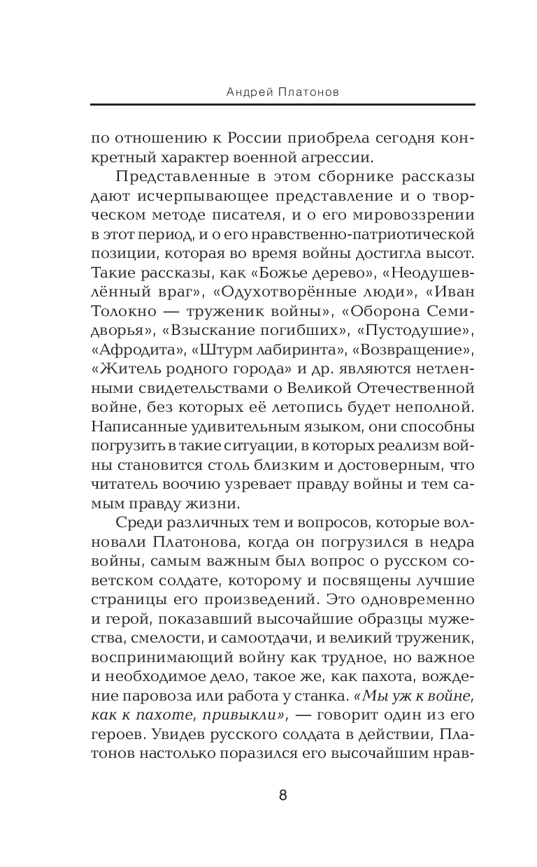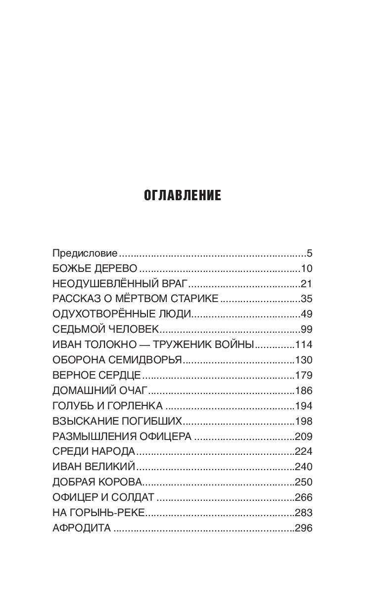 "Взыскание погибших", "Одухотворенные люди", "Оборона Семидворья", "Пустодушие" и другие рассказы автора, в военное время работавшего фронтовым корреспондентом всесоюзной газеты "Красная звезда".