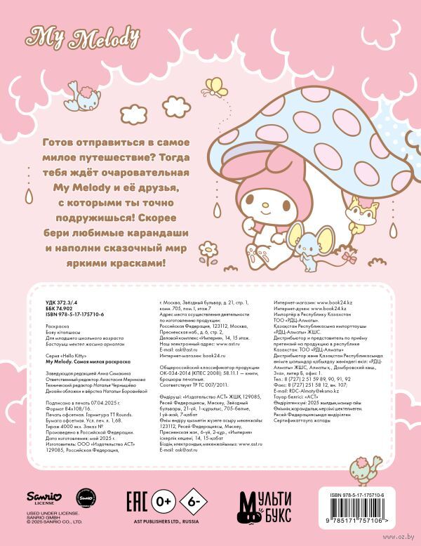 Готов отправиться в самое милое путешествие? Тогда тебя ждёт очаровательная My Melody и её друзья, с которыми ты точно подружишься! Скорее бери любимые карандаши и наполни сказочный мир яркими красками!