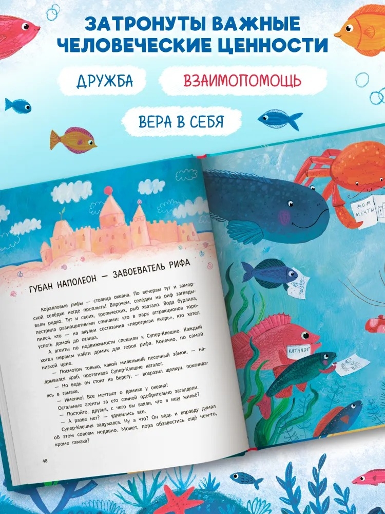 Клешня не только защищает рыб от акулы, но и отговаривает рыбу-наполеона завоёвывать океан, подбадривает начинающего осьминога-саксофониста, раскрывает тайну призраков-прилипал и даже вытаскивает из западни хмурого спинорога! Но кто же позаботится о самом супергерое?