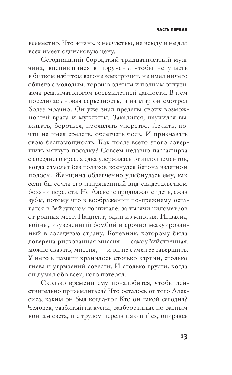 Алексис, врач скорой помощи, восемь лет проработавший в горячих точках, после ранения возвращается на родину – в Бретань. Он измучен физически и истощен морально, его постоянно преследуют воспоминания о несчастных жертвах войн, которым он, несмотря на всю свою самоотверженность, так и не сумел помочь.