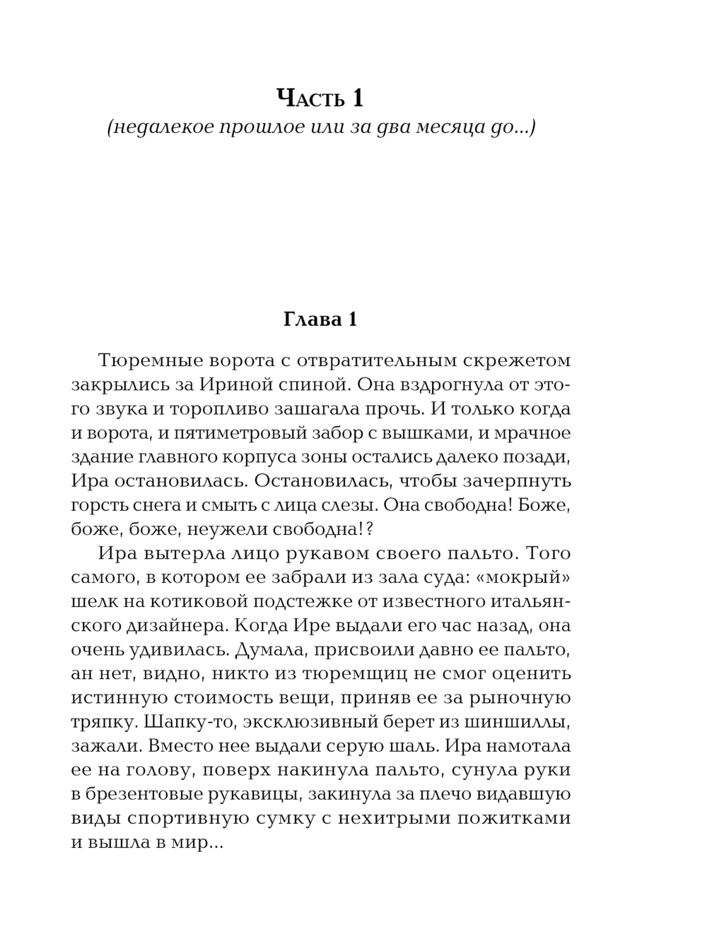 Ради него она покинула столицу, оставила должность главного редактора модного журнала, забросила друзей, интересных, успешных, талантливых, и посвятила себя ему. Однако он не оценил, и они расстались. А Ира по-прежнему любила и, возможно, вернулась бы к нему, но…