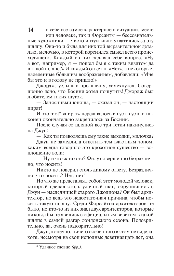 "Сагу о Форсайтах" Голсуорси писал более 15 лет. Поистине не имеющий аналогов по масштабности цикл, охватывающий жизни не одного поколения семьи Форсайт и их ближайшего окружения. Неоднократно служившая основой для телесериалов и фильмов, эта эпическая семейная сага, с одной стороны, поднимает острые социальные вопросы, а с другой – рассказывает о судьбах людей, чьи жизненные перепитии не оставят никого равнодушным. Яркие характеры, неожиданные сюжетные повороты, любовь и страсть, сметающие все на своем пути, сплетни, козни, интриги, тайны, – вот основа успеха этой никогда не устаревающей книги.