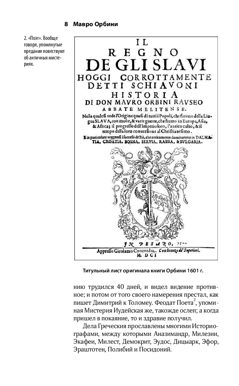 Мавро Орбини, средневековый историк и бенедиктинец, в своем труде исследует происхождение, культуру, военные достижения и политическую организацию древних славян, доказывая их значимость в истории Европы.