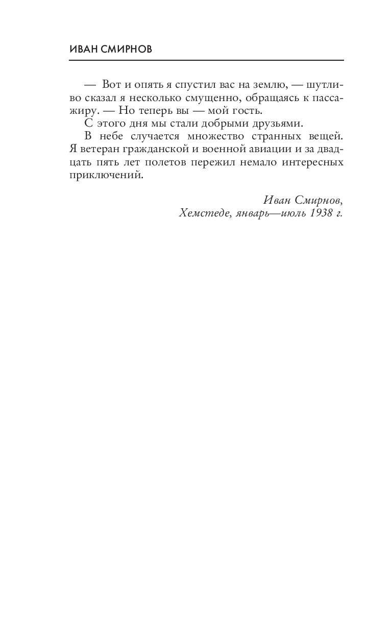 Пора исправить эту несправедливость. Тем более, сам Иван Смирнов честно и беспристрастно рассказал о себе, ничего не скрывая и не приукрашивая. Сегодня мы имеем возможность читать его мемуары и удивляться такой трудной, яркой, красивой, честной жизни. И пусть большую ее часть он был оторван Родины и тосковал о ней, но ничто в этой судьбе не заставит нас стыдливо опустить глаза. Напротив, с гордостью и радостью хочется признать в Иване Смирнове соотечественника, который, наконец, вернулся в любимую Россию. Хотя бы в памяти.