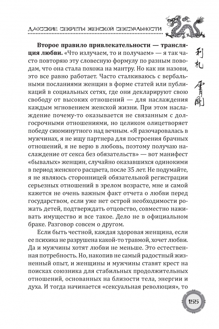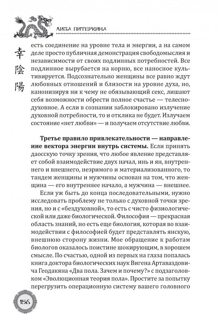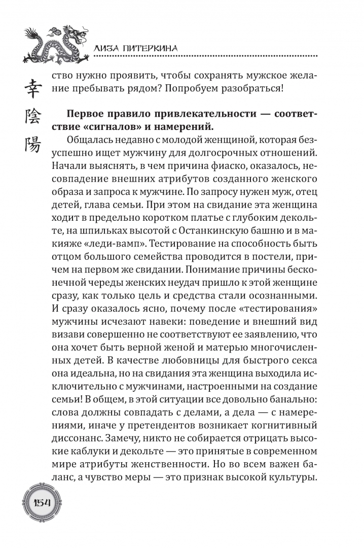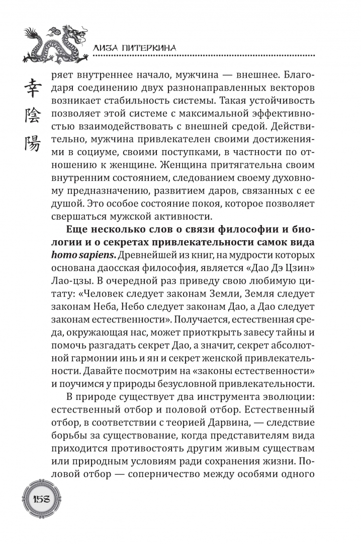 Лиза Питеркина – писатель, телеведущая, автор семинаров по искусству построения взаимоотношений между мужчинами и женщинами, ученица китайского Мастера Дао представляет вторую книгу, посвященную загадочной науке Древнего Востока. Практики Дао – это способ добиться особой чувствительности и особой осознанности. В новом издании Лиза делится с читательницами уникальной информацией, которую передал ей мудрый наставник, Мастер Дао Цзи Сяоган.